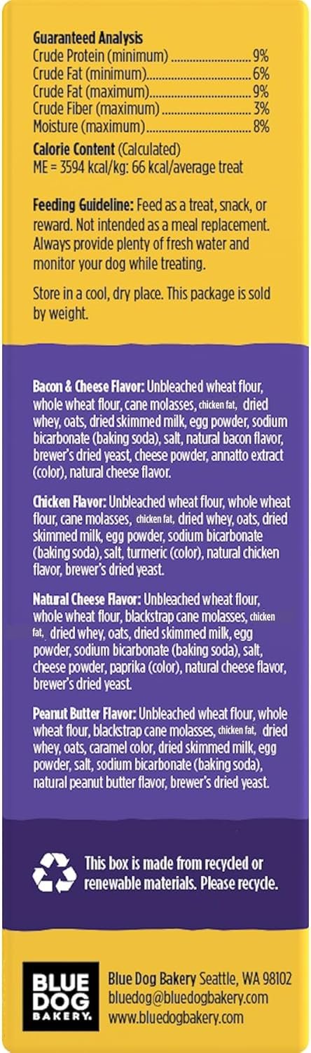 More Crunch treats are packed with healthy ingredients you can feel good about giving your best friend every day. These oven-baked biscuits deliver big crunch in a variety of fun shapes and flavors. Give them the joy they give you. Blue Dog Bakery bakery-fresh More Flavors include their original Peanut Butter & Molasses, Natural Cheese, Grilled Chicken, and Bacon & Cheese flavors. These treats are made with natural whole wheat, real eggs, and nonfat milk, which make them low-fat and easy to digest. While we trust our office dogs’ tail wags as positive indicators of good taste, we also personally taste-test all of our products before they go to market. Made with no additives or preservatives, you can rest easy knowing your dog is getting the best treat that all-natural ingredients can bake.
