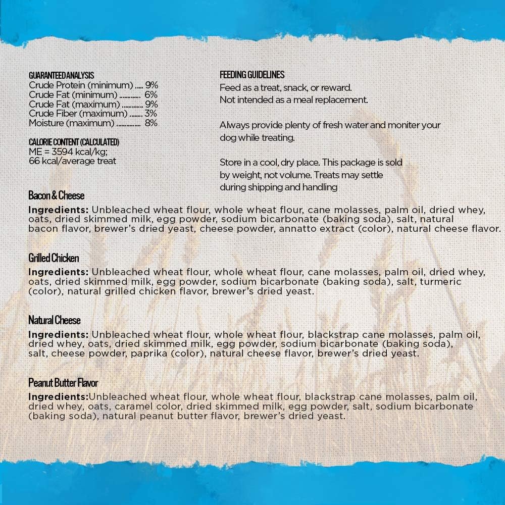 LOW FAT & CRUNCHY DOG TREATS: Our original recipe treats in assorted flavors receive barking ovations from dogs big and small; Made with natural whole wheat, real eggs and nonfat milk; 18 Ounce Box, Pack of 1