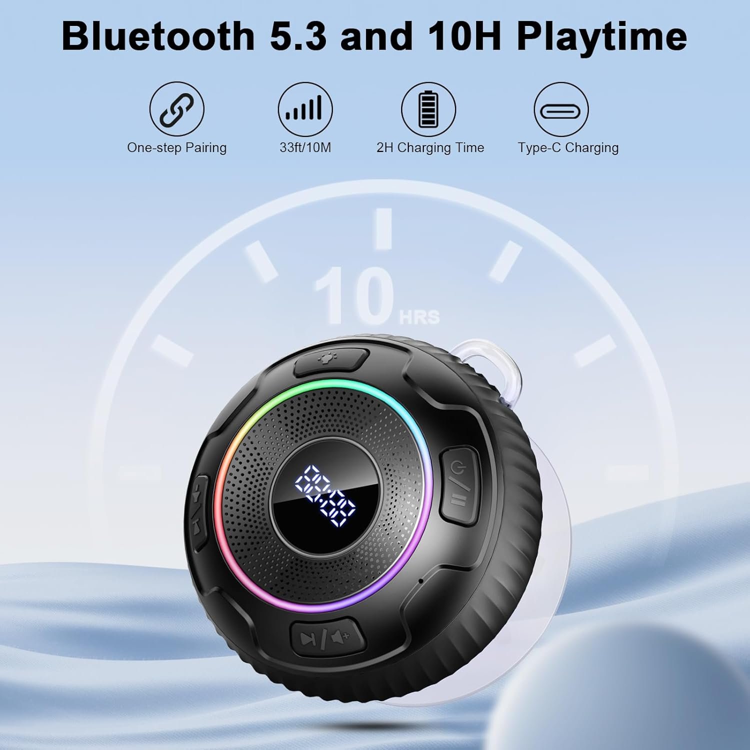 10 Hours Happy Playing Time: Shower portable wireless bluetooth speakers are powered by a durable 1100 mAh rechargeable lithium battery, can be played for 10 hours per charge. Built-in microphone for hands-free calls, lightweight, can be carried easily. Ideal as a holiday gift for Birthday, Christmas, Thanksgiving, for family and friends, boy, girl.