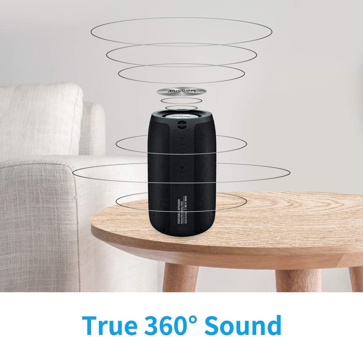 Bluetooth Speaker,Musibaby 12W Portable Speaker,IPX5 Waterproof,24H Playtime,Wireless Outdoor Speakers Bluetooth Wireless,Dual Pairing,Loud Booming Bass for Office,Home,Outdoor,Ideal Gifts(Blk)