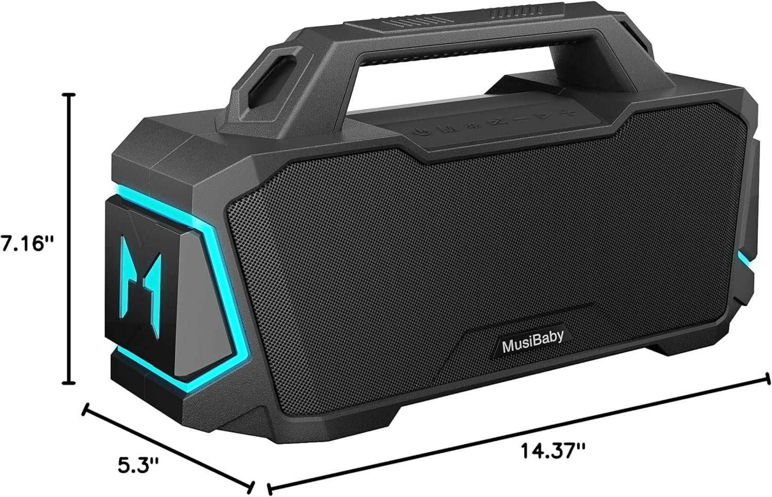 ♩♪♫【OUTDOOR SPEAKERS WITH BLUETOOTH 5.3 & MULTIPLE PLAYBACK MODES】MusiBaby M1 speakers bluetooth wireless with advanced bluetooth 5.3 that can easily connect normally under difficult conditions and the signal is not disturbed. .This large bluetooth speaker offers a range of up to 100 feet and fast connection to any of your other bluetooth devices.This blue tooth speaker wireless for iphone,it can connect laptop,MP3,iPhone,iPad,personal computer,TV or other non-Bluetooth device with 3.5mm audio jacks.This outdoor speaker also features TF card,AUX,USB flash drive and other different functions for travel preparation,perfect for your party loud bluetooth speakers portable wireless choice