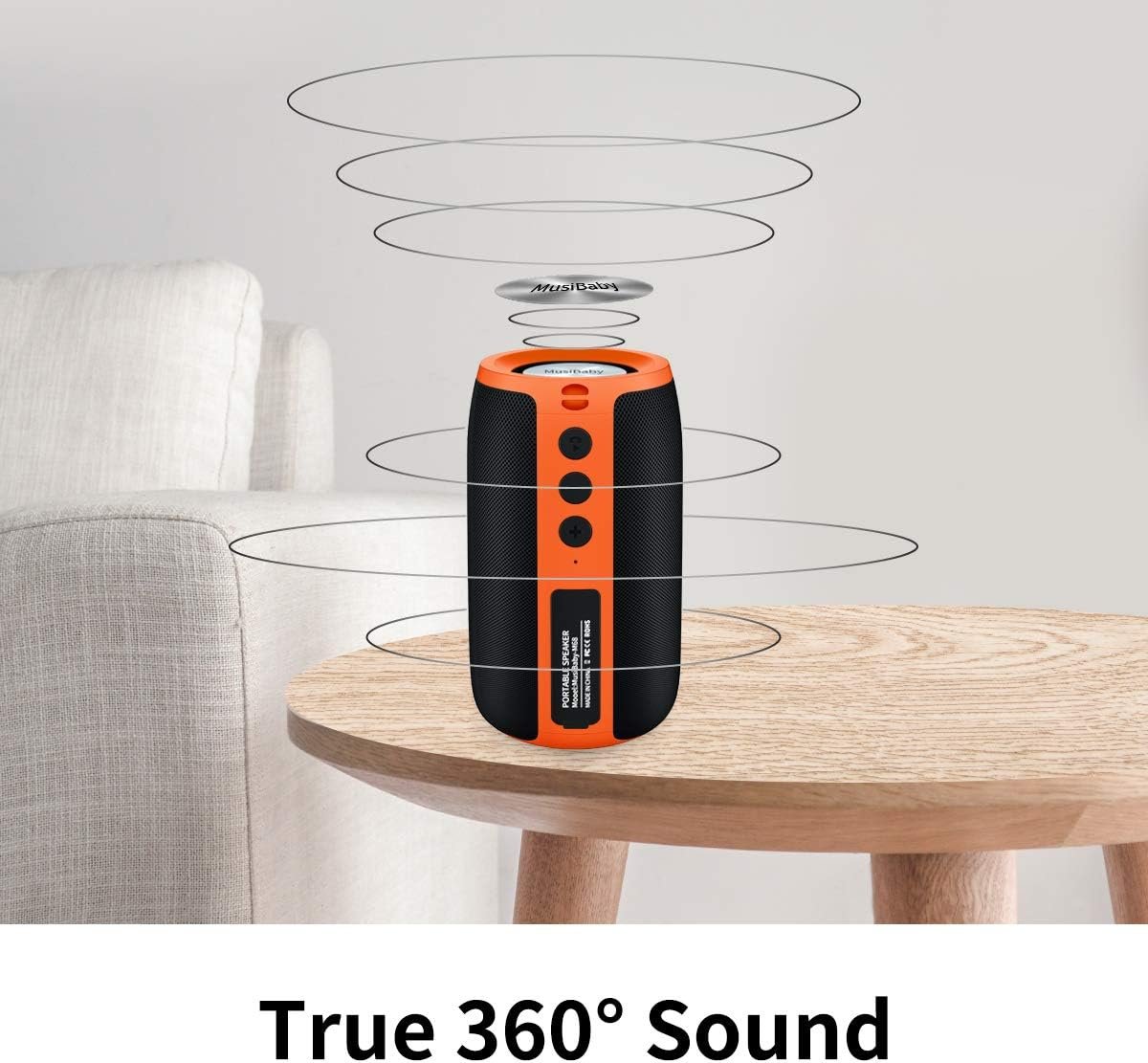 ♩♪♫【SPEAKERS BLUETOOTH WIRELESS WITH LONG BATTERY LIFE】MusiBaby speakers bluetooth wireless,size only 4.9*2.9*2.9 in,designed as a portable speaker.With 24 hours playtime,long enough for any occasion.This portable speaker suitable for any indoor or outdoor activities.In terms of weight,this bluetooth speaker is light and stylish.The portable bluetooth speakers is also a speakers bluetooth wireless.Recommend this bluetooth speaker as gifts for women or men