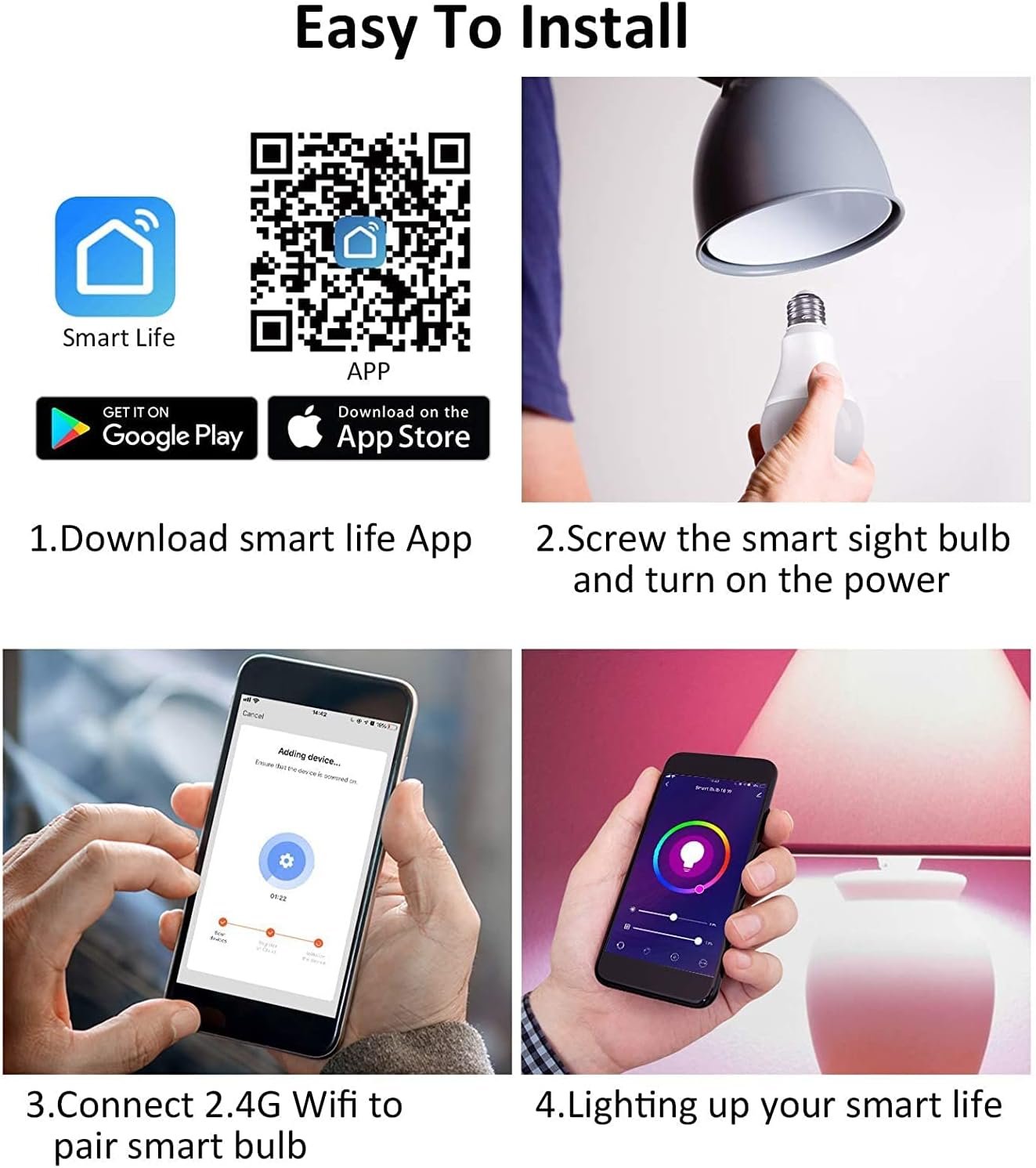 [Alexa Light Bulb | Quick, Easy Installation by 2.4Ghz Wi-Fi] Easy for you to connect KHSUIN smart bulbs to Alexa, Echo of all generations, Google smart home devices by 2.4Ghz Wi-Fi, no hub required. Please download Smart Life App and follow the manual or video in it to initiate smart control for KHSUIN smart bulbs. Notice: Please don’t use smart dim switch for controlling smart bulbs.