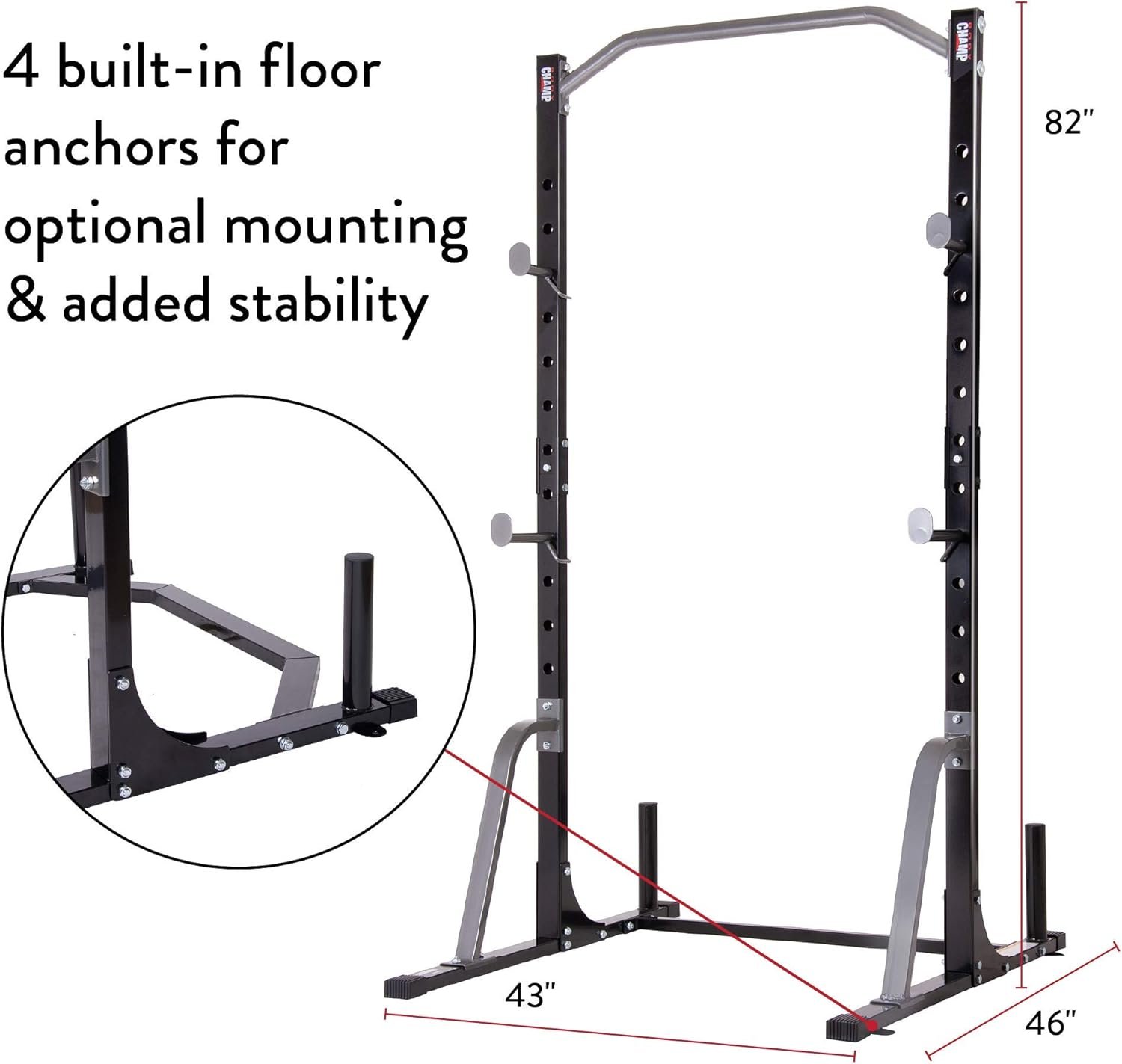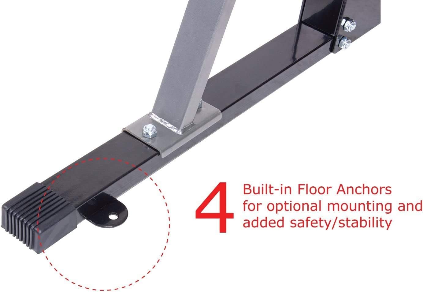 STABLE BASE FRAME DESIGN: Our power rack system comes with 4 floor anchors and 4 rubberized feet to keep you safe throughout your workout. Whether you’re hanging from the pull-up bar or resting between bench-press sets, you can stay secure