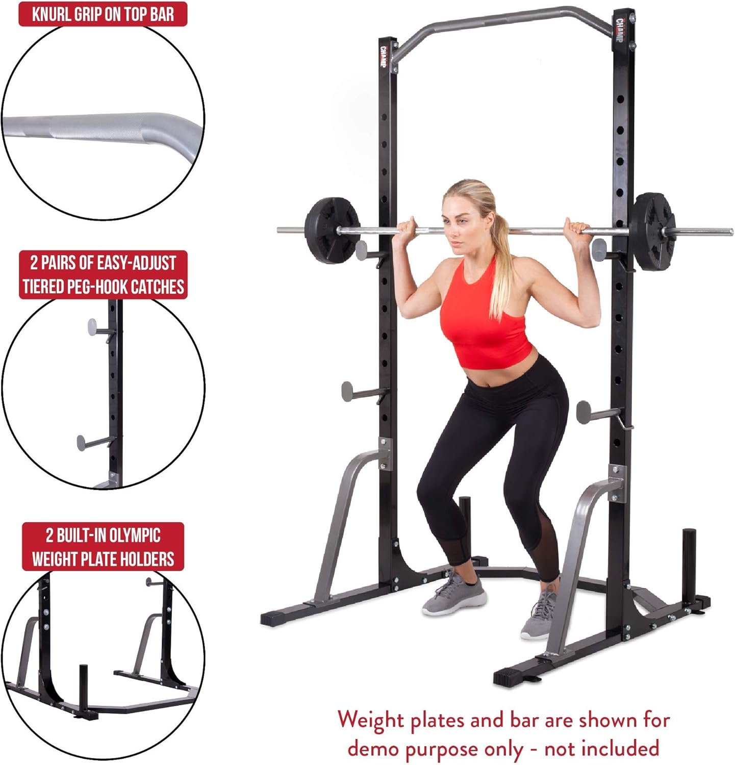 CUSTOMIZE YOUR WORKOUT: Our simple power rack frame gives you everything you need to completely customize your at-home fitness routine. From resistance training to weightlifting to body-weight exercises, Body Champ has got you covered