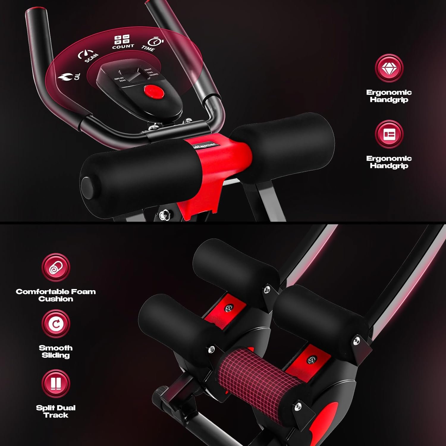 【Professional & Effective Ab Machine】This ab machine is uniquely designed with 120°curved dual-track sliders, which can strengthen your abdominal muscles effectively while without putting strain on the back or neck. Separated sliders involve more muscles, targeting on thigh, crus, hip, stomach and core muscles, maximizing the workout efficiency.