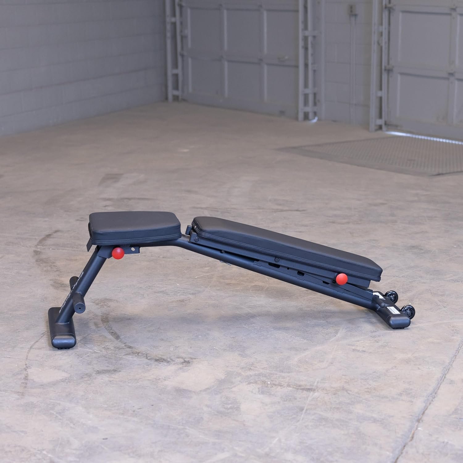 EASILY ADJUSTABLE: This Weight Bench easily adjusts from flat to incline to decline, accommodating a variety of workouts for full-body fitness. Ideal for home gyms, its foldable design, transport wheels, and pull-pin storage option maximize space, ensuring it fits into your life as seamlessly as it shapes it.