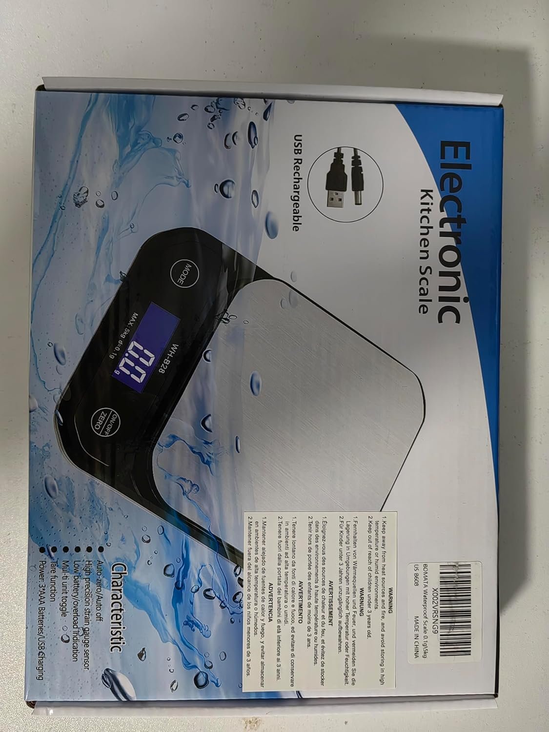 [ Size, Package Contents ]: Size of Scale: 8.3 x 6.3 x 1.2 inches. It Can meet your measurement needs from large meat, food to small condiments, etc. Package Contents : Scale x 1, USB Cable x 1, User manual x 1.