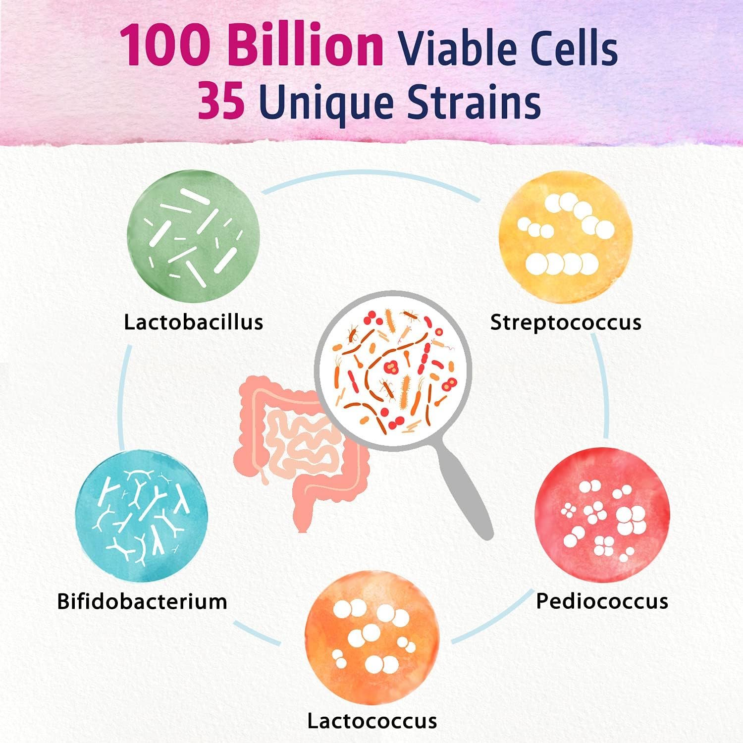 A Large CFU Count and Diverse Strains: Our 4-in-1 Probiotics for Women carries an impressive 100 billion CFU from 35 active strains to increase the microbial richness and diversity in your body.* Each bottle offers a guaranteed shelf life without refrigeration and utilizes delayed-release capsules to ensure these microbes’ survival and delivery to the desired location.