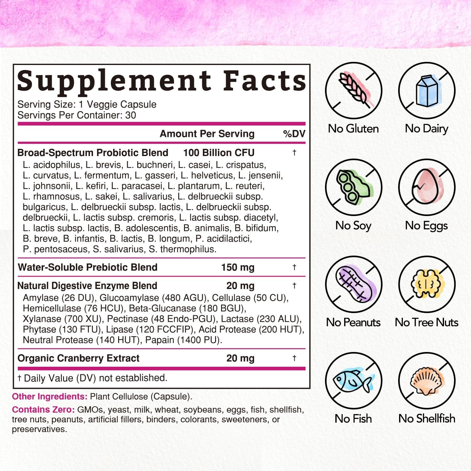 Probiotic + Prebiotic + Digestive Enzyme + Cranberry: Bonawell Probiotics for Women combines broad-spectrum live probiotic strains, several types of soluble prebiotic fiber, an array of different digestive enzymes, and organic cranberries. This groundbreaking mixture helps boost digestive function, fortify the immune system and enhance feminine and gut health.*