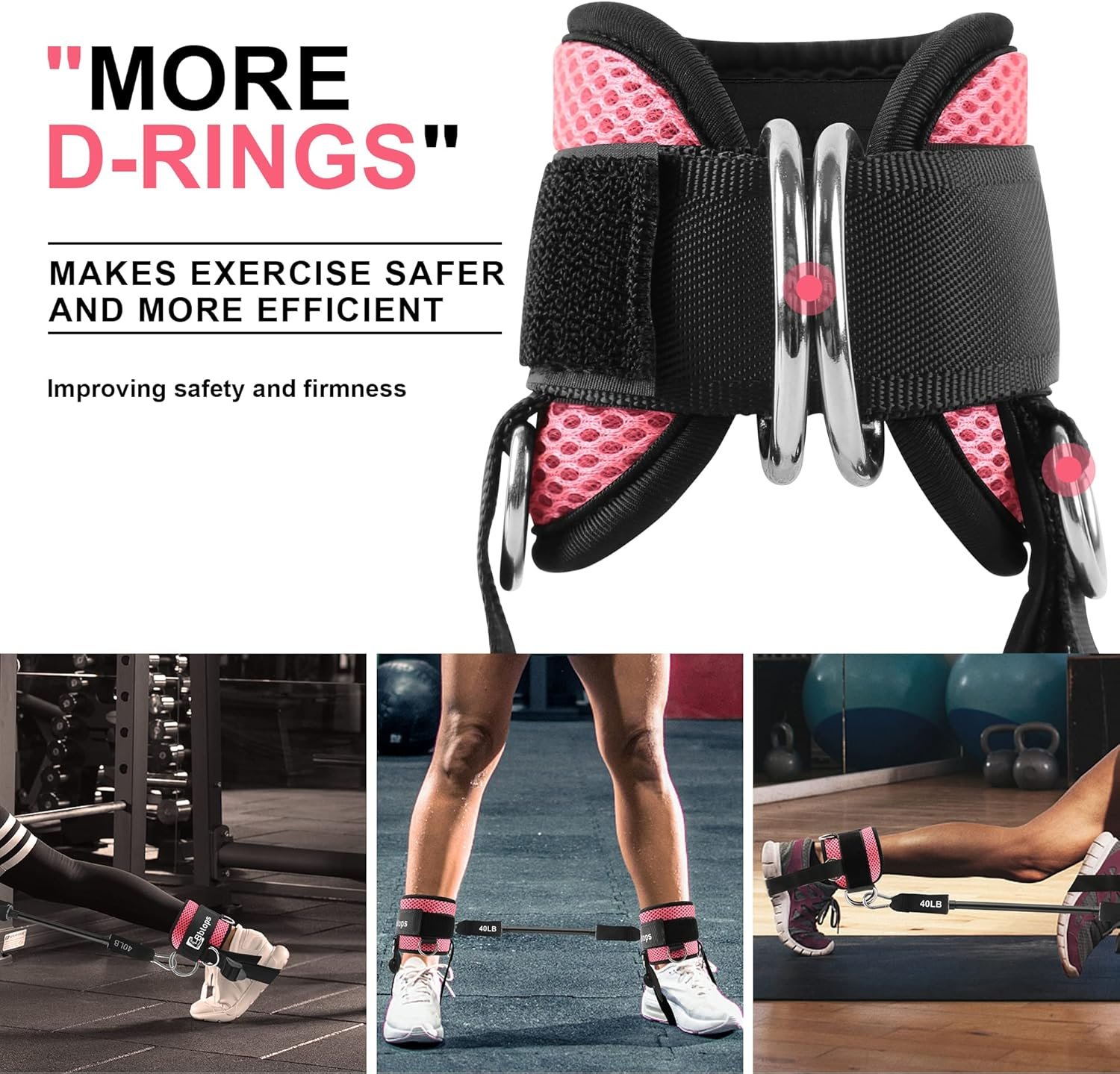 【Different Resistance Levels】 Our ankle resistance bands come in 3 different resistance levels, Whether you’re doing kickbacks, lunges or donkey kicks, the four D-rings around the ankle work your thighs, glutes, hamstrings and calves. You can easily choose the right level of difficulty to challenge your fitness goals.