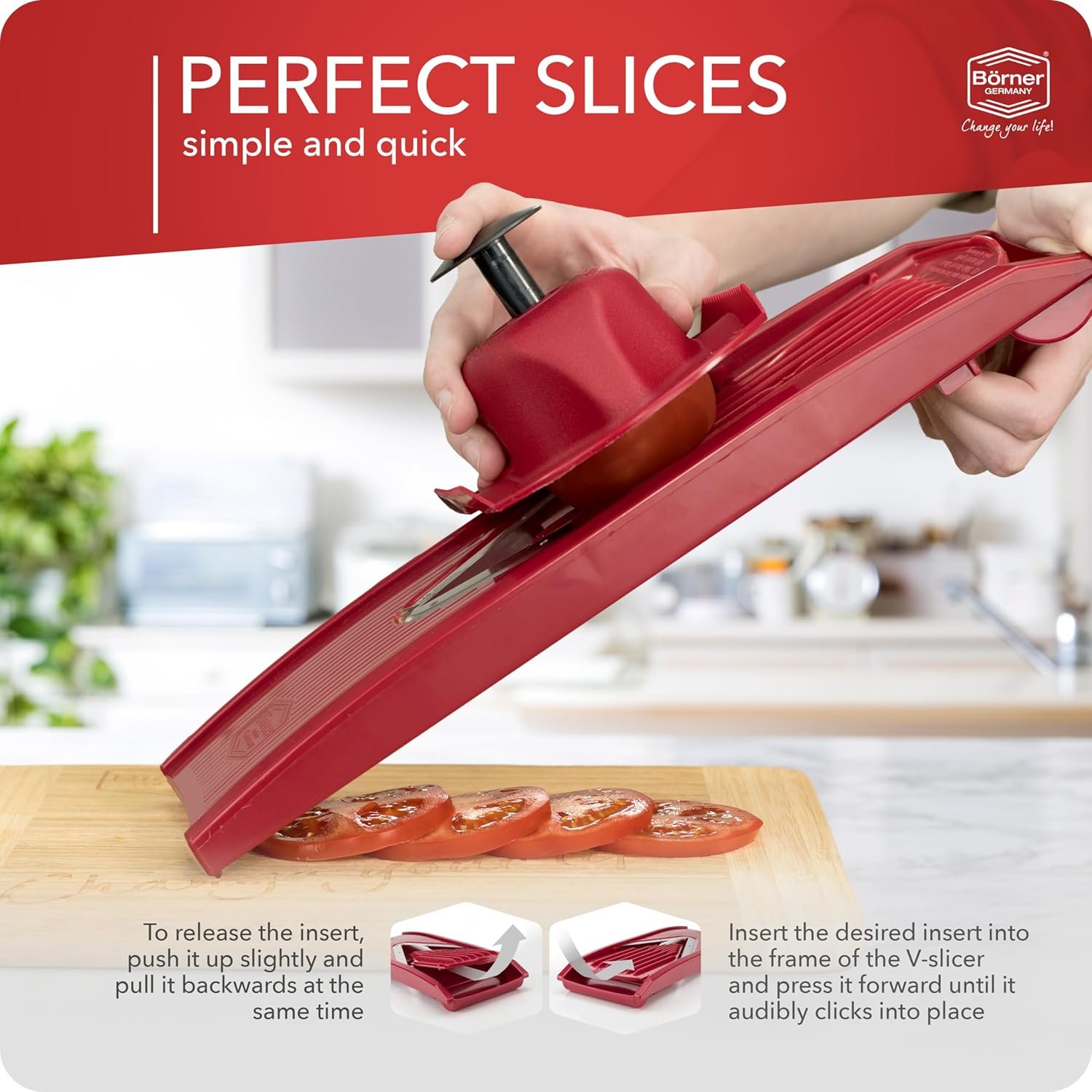 BÖRNER QUALITY “MADE IN GERMANY” – We are the inventors of the V-slicer and have been offering “Made in Germany” quality since 1956. We manufacture every part – including the blades – at our headquarters in the Eifel region. With our practical kitchen helpers, it is finally easy to prepare good and delicious meals. Our products are for everyone.