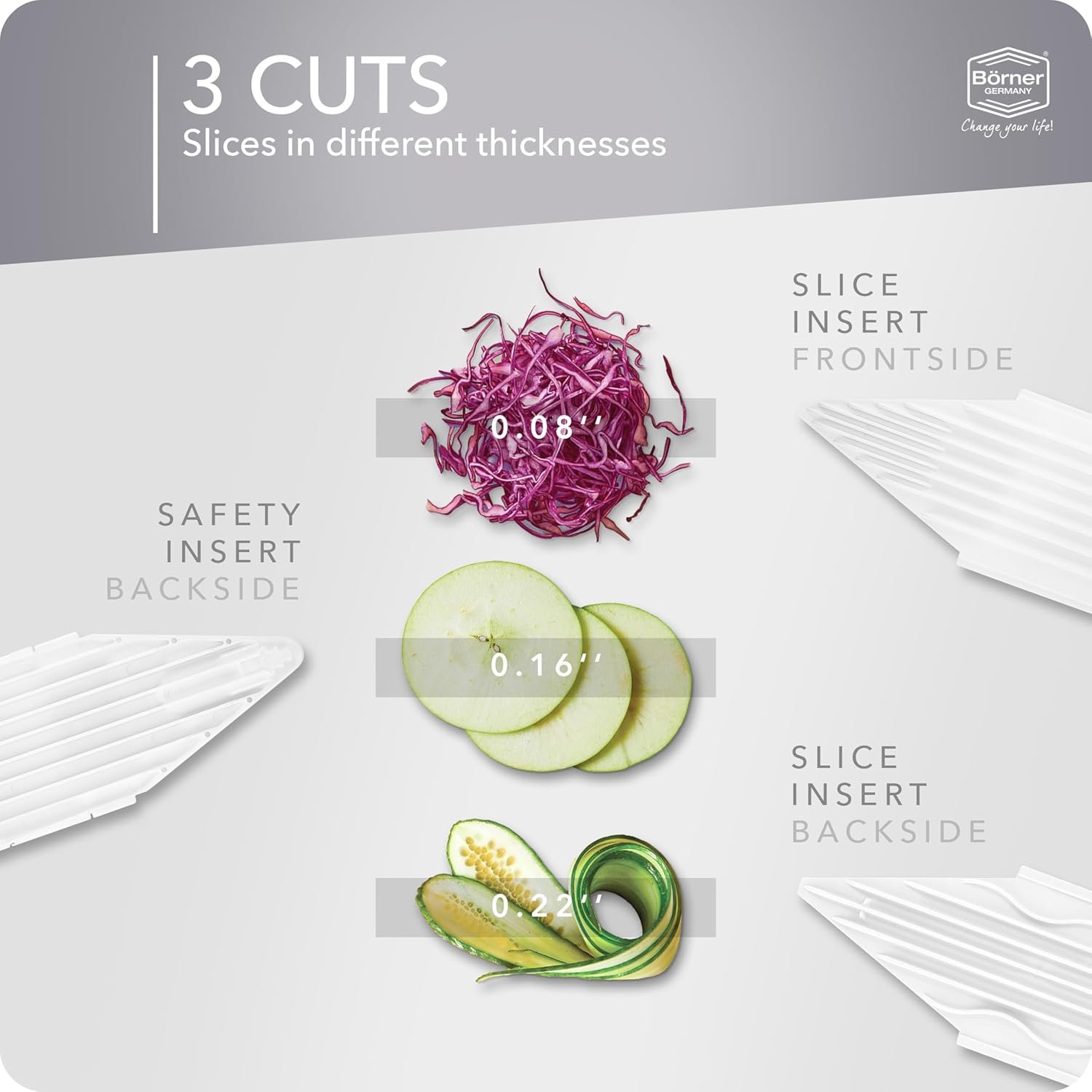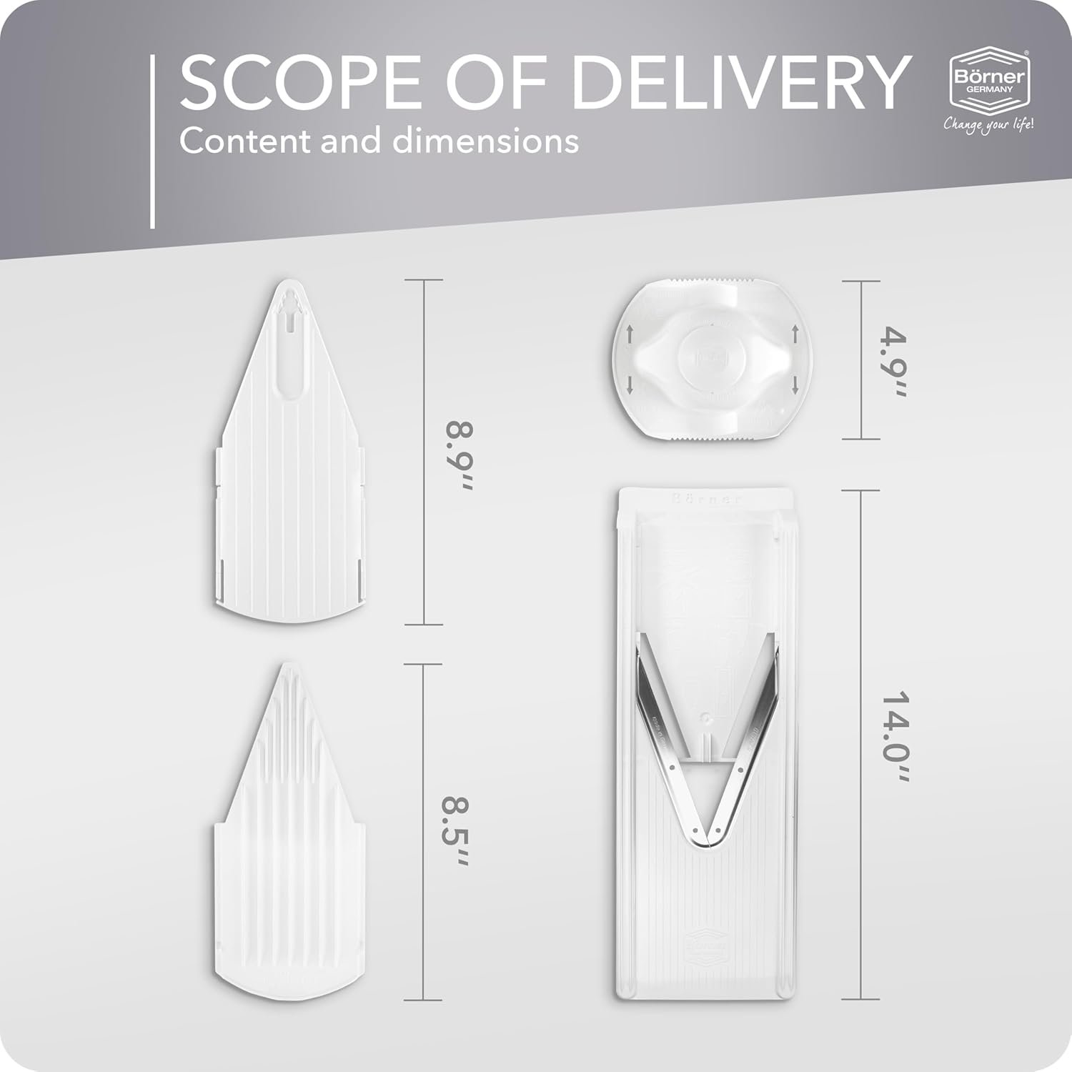 BÖRNER QUALITY “MADE IN GERMANY” – We are the inventors of the V-slicer and have been offering “Made in Germany” quality since 1956. We manufacture every part – including the blades – at our headquarters in the Eifel region. With our practical kitchen helpers, it is finally easy to prepare good and delicious meals. Our products are for everyone.