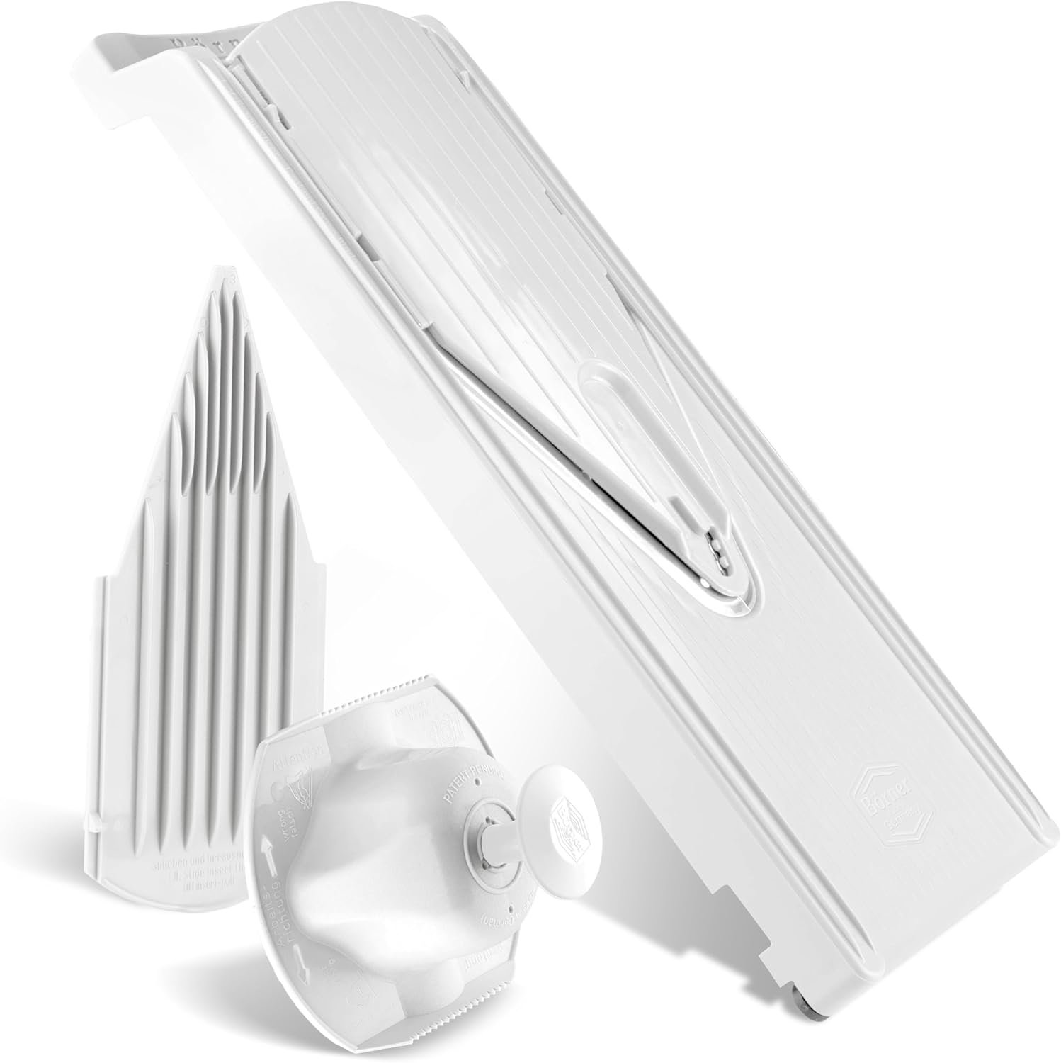 PATENTED BÖRNER V-BLADE – With the Börner V3 Mandoline and its ultra-sharp V-blade made of stainless steel, you can slice fruits & vegetables such as cucumbers, tomatoes, potatoes, bell peppers, radishes, and much more into even slices of different thicknesses. The vegetable slicer is also ideal for professional use in the catering industry or as a practical gift for home cooks.