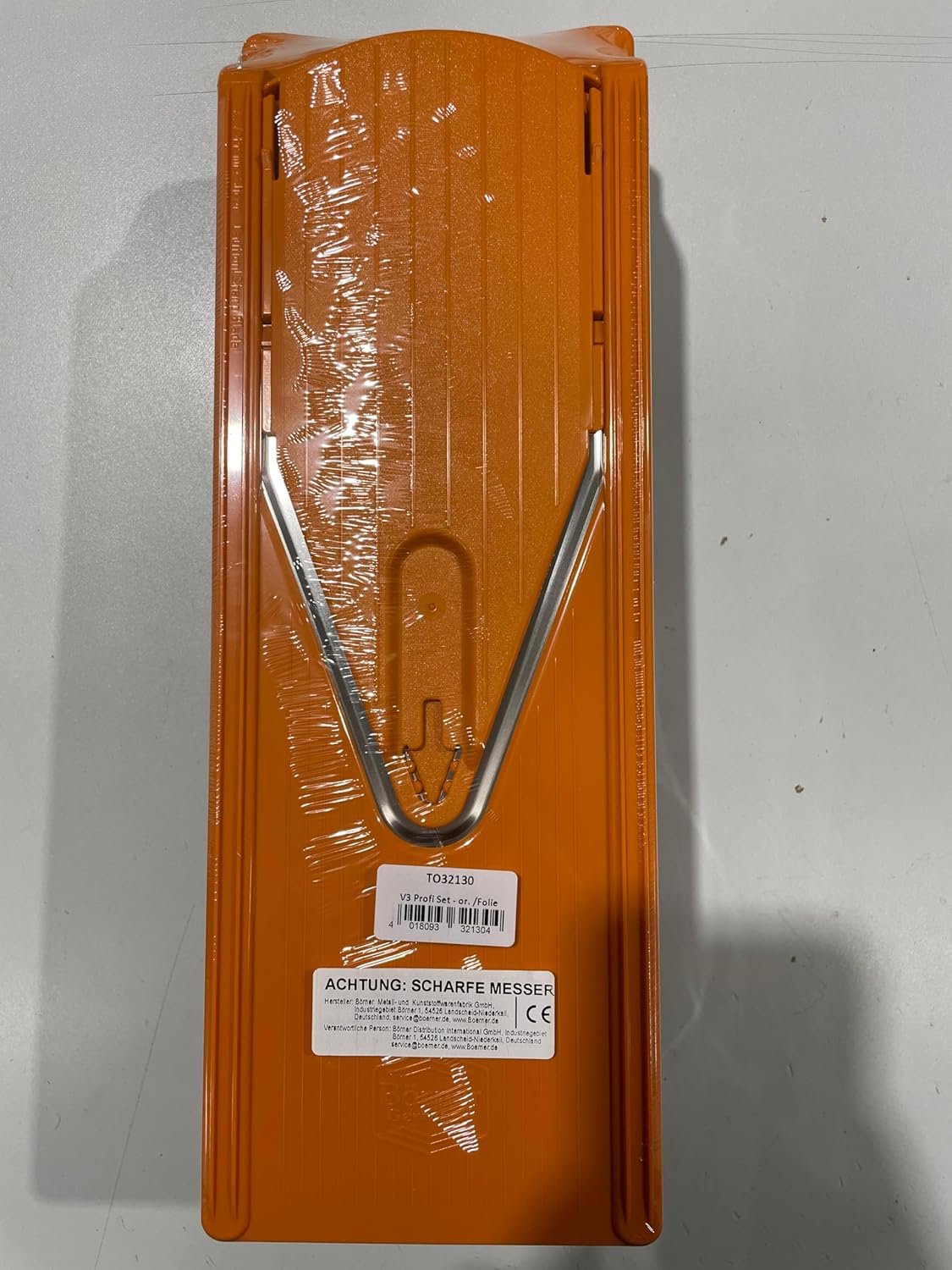 PROFESSIONAL MANDOLINE – Our V-Slicer is the ideal helper in your kitchen when you want to prepare vegetables & fruits quickly, effortlessly. The vegetable chopper features an ergonomic handle for holding, food-grade material, non-slip rubber feet for stability, and ultra-sharp stainless steel V-blades. Our V3 Professional Set is also ideal for professional use in the catering industry.