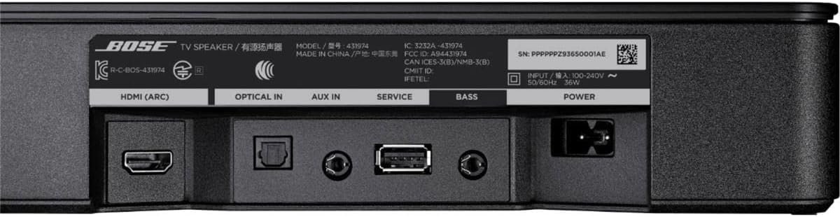 Build and expand: The Bose TV Speaker is compatible with the Bose Bass Module 500 or 700 and requires the Bose Bass Module Connection Cable or a standard 3.5 millimeter audio cable, sold separately. Power cord:5 ft