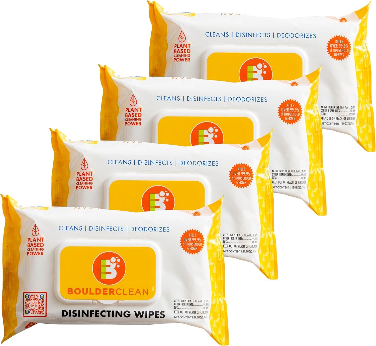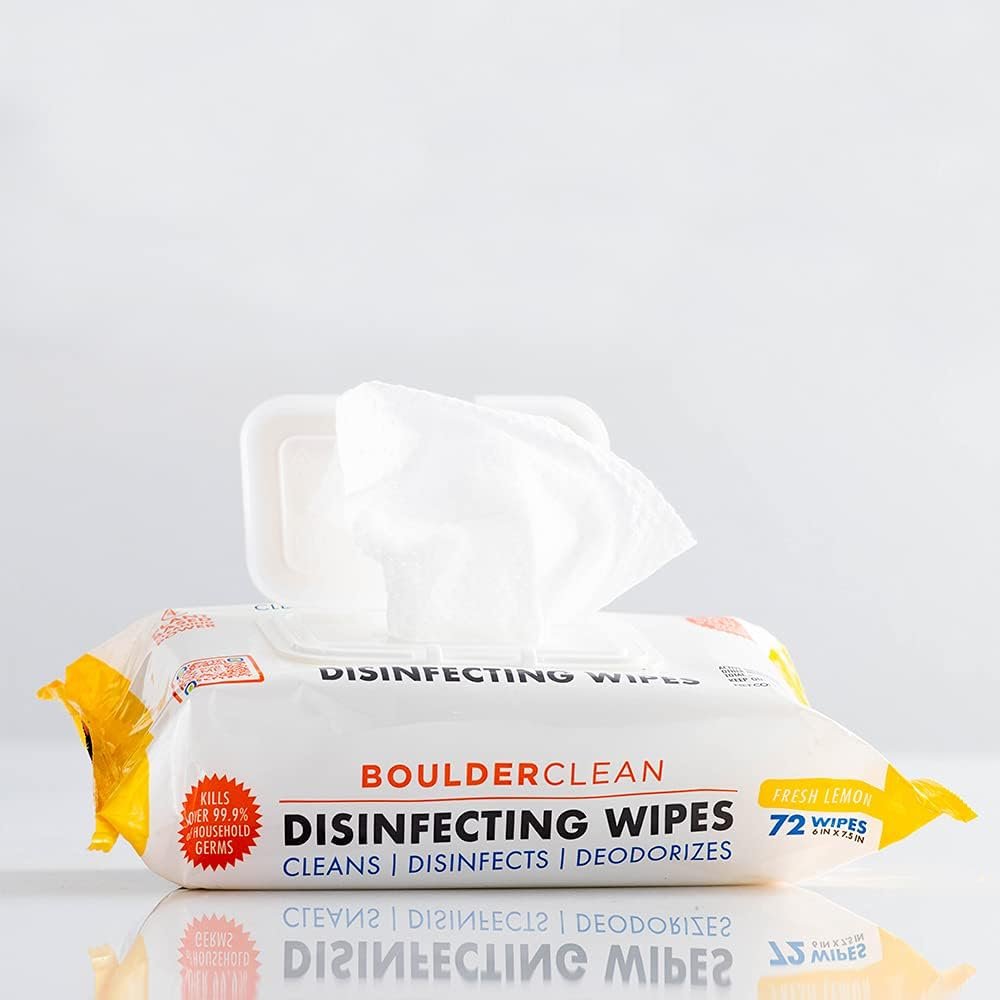 Boulder Clean Disinfecting Wipes, Fresh Lemon, Eco-Friendly Disinfectant, Multi-Surface Cleaning Wipes, On-The-Go Antibacterial Wipes, Kills Over 99.9% Germs, 72 Count (Pack of 4)