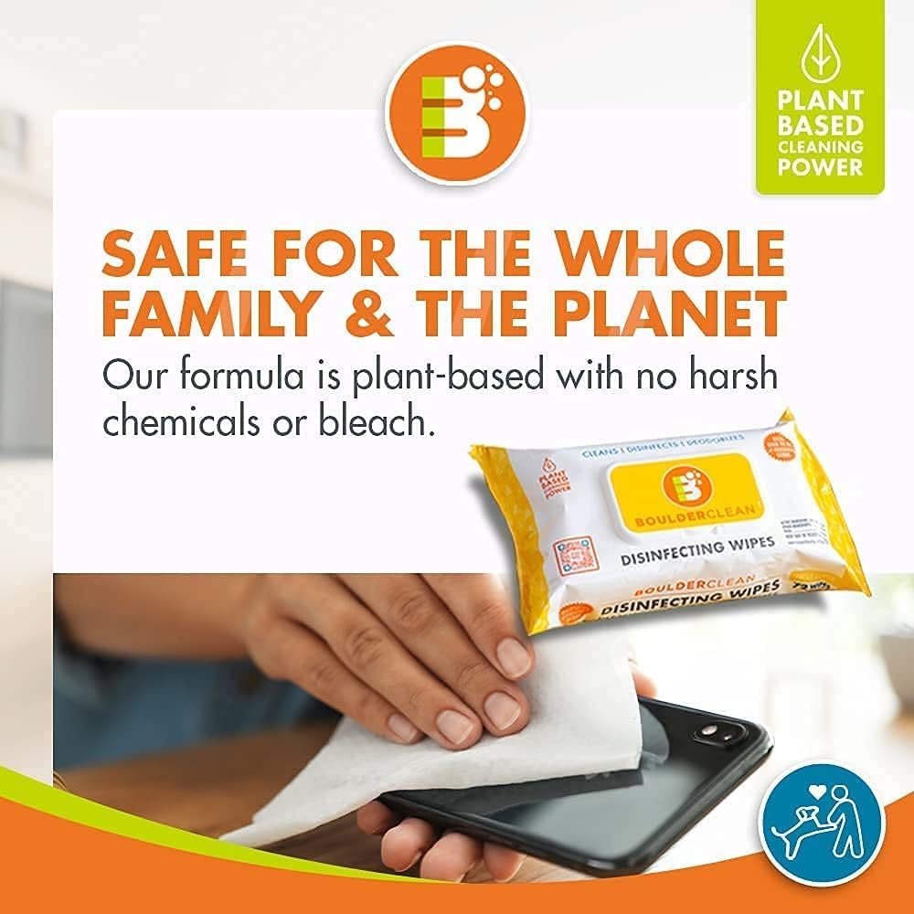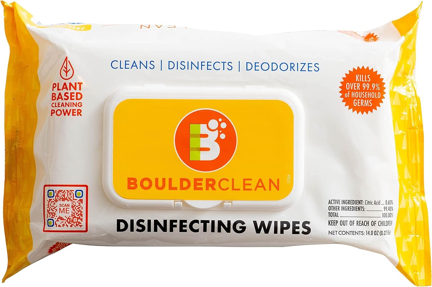 SAFE & EFFECTIVE – Tackle life’s everyday messes with a household cleaner that is convenient, earth-friendly and safe for use around your children and pets. Boulder Clean multi-surface cleaning wipes feature an effective plant-based formula that disinfects and deodorizes while you clean, in one step. Suitable for use on hard, non-porous surfaces including stainless steel, chrome, metal, mirrors, glass, glazed porcelain, plastic, vinyl, glazed tile and sealed granite.