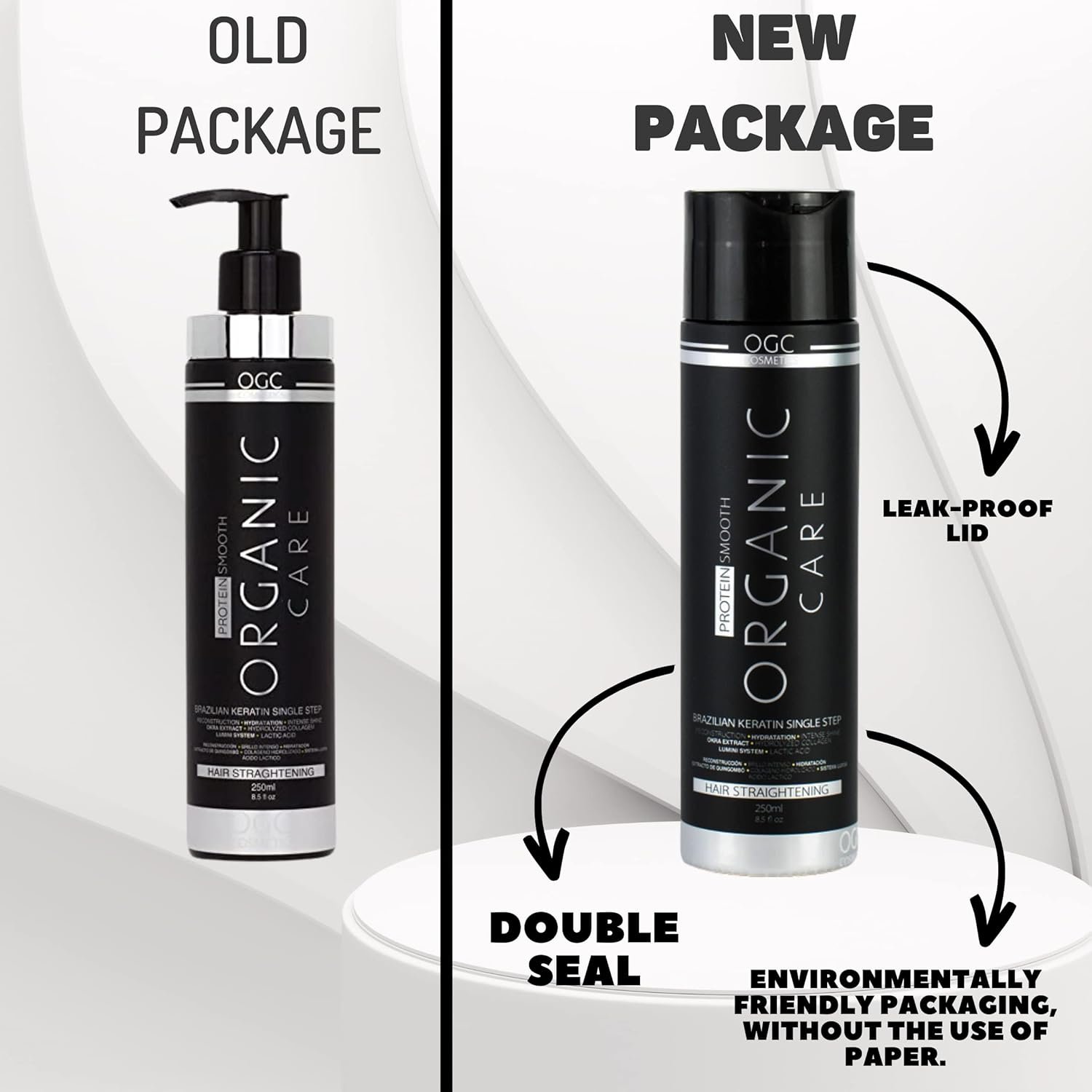 ORGANIC CARE PROTEIN SMOOTH: Rejuvenates hair making it smooth, strong and frizz-free. Treatment lasts 3 months. Organic Care is a salon professional smoothing treatment and can be applied at HOME. Advanced yet fast and simple to use keratin treatment that instantly straightens, smooths, repairs, conditions, and strengthens the hair using an intense conditioning remedy which restores vitality by repairing the hair from the inside out.