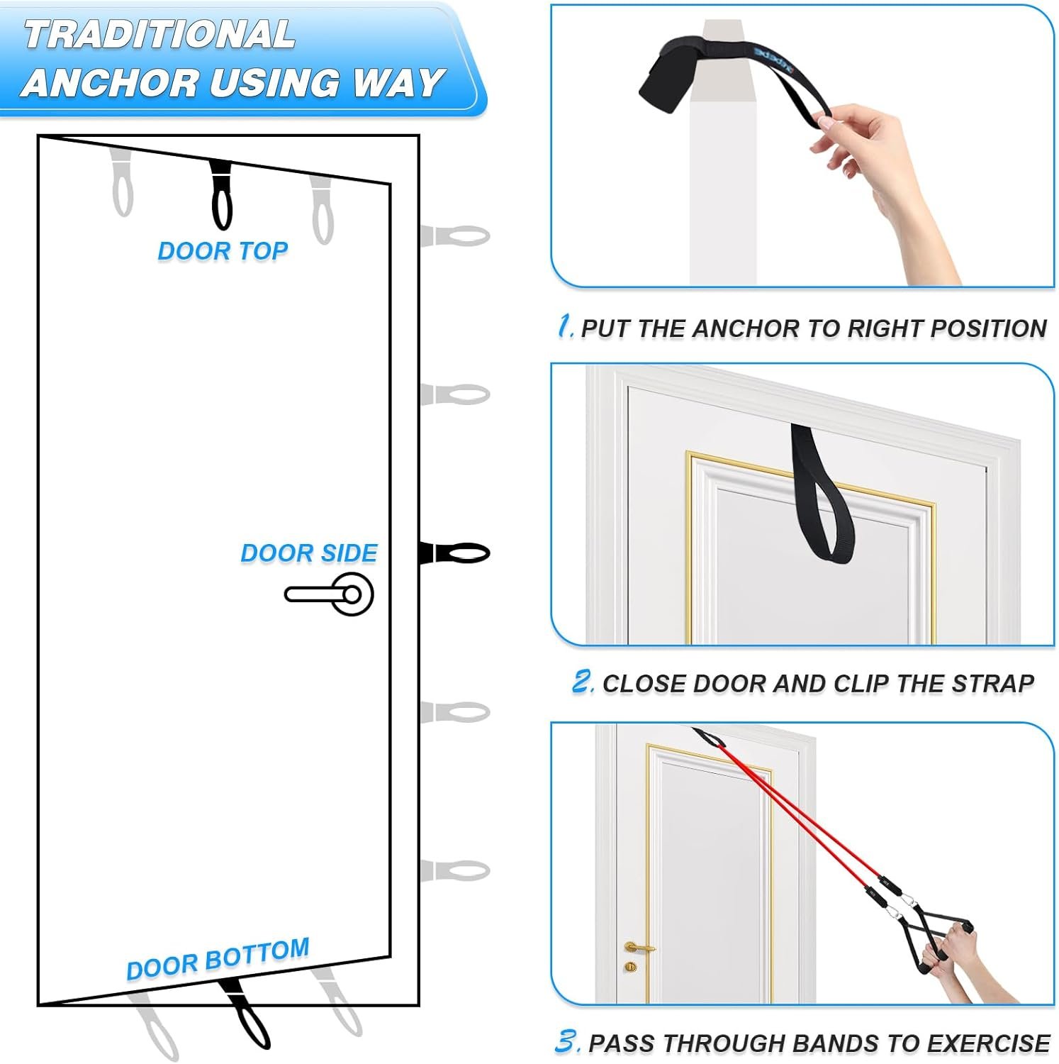 🔊【5 D-rings】 We have specially designed 5 stainless steel D-rings on the door anchors, which is more conducive to connecting the carabiners, easy to use.