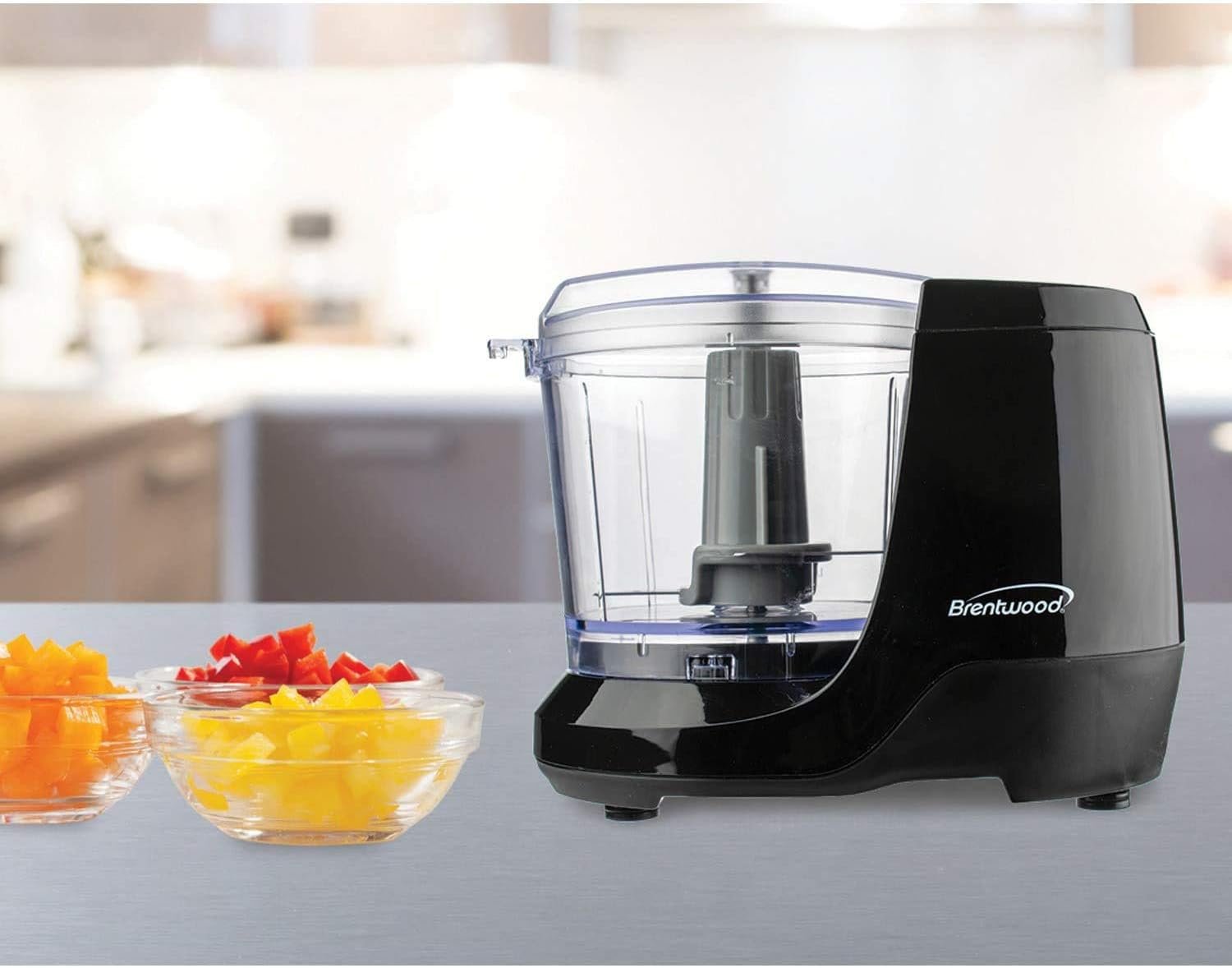 The powerful Brentwood appliances MC-109BK 1-1/2 cup mini food chopper saves you time and energy in the kitchen. With its safe and simple operation, it’s ideal for prepping dips, salsas, veggies, spices, and more. This Black food chopper is BPA-free and has easy to clean removable parts.