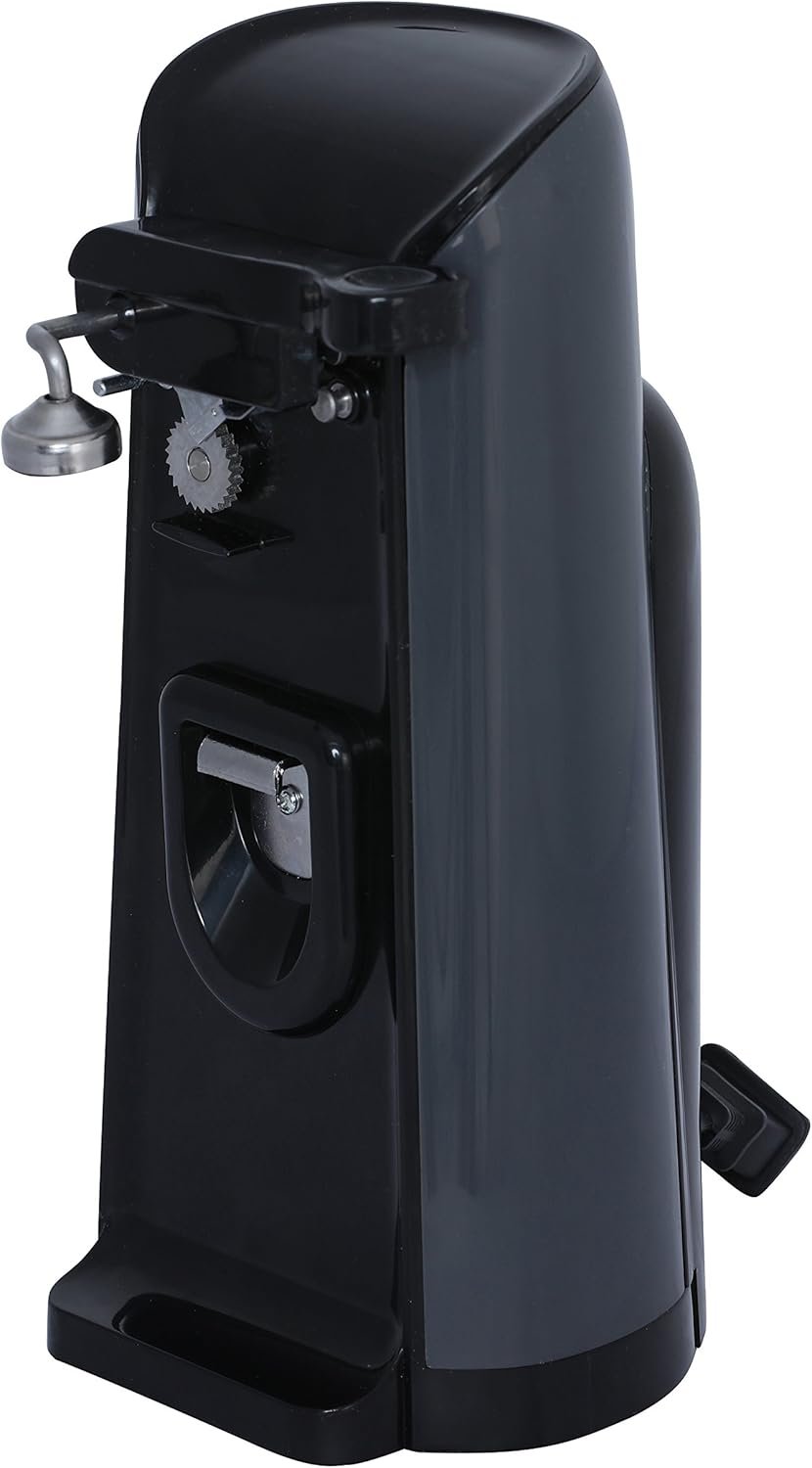 Life is easier with the Brentwood J-30B Tall Electric Can Opener with Knife Sharpener & Bottle Opener. Our extra tall can opener has auto pierce and shut off, capable of opening any size can on the first try. The magnetic lid holder prevents the lid from falling into the can avoiding any potential mess. Easily remove the one touch lever to clean the blade assembly. Quickly touch up your plain edge knives using the built-in manual ceramic knife sharpener. Pop open an ice cold drink using the conveniently located and highly durable bottle opener. The 3 foot long power cord stores neatly in the base for frustration free storage between uses. Save counter space in your kitchen with this smartly designed 3 in 1 can opener. The stylish 2 tone white and grey color looks great in every kitchen.