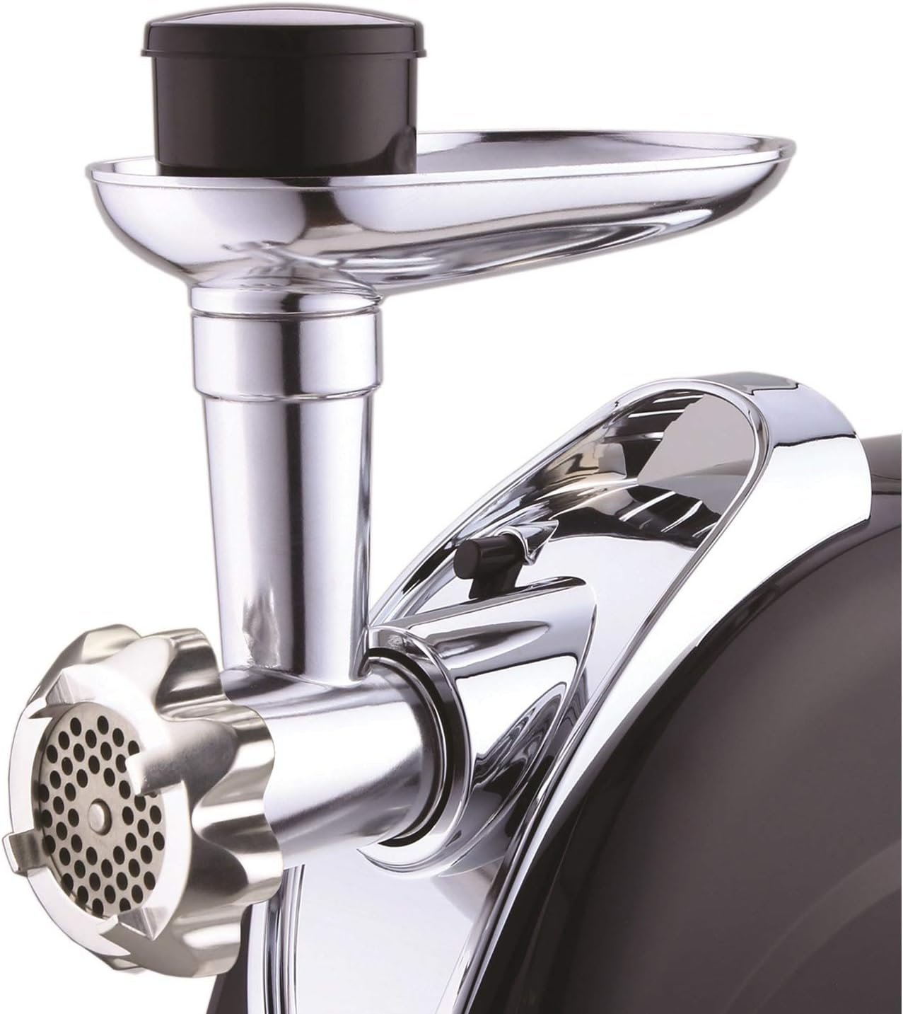 Brentwood Appliances MG-400BK Meat Grinder, Professional-Grade Grinder, Powerful 400 Watt Motor, Heavy Duty Stainless Steel Cutting Blades, Internal Circuit Breaker for Safety, Black ColorThe powerful 1200 peak watt Brentwood MG-400BK Electric Meat Grinder and Sausage Stuffer processes all types of meats. Fine and course cutting plates produce different textures. Make sausages and traditional Kubbe with included attachments. Reverse operation removes jams. Dishwasher safe removable parts