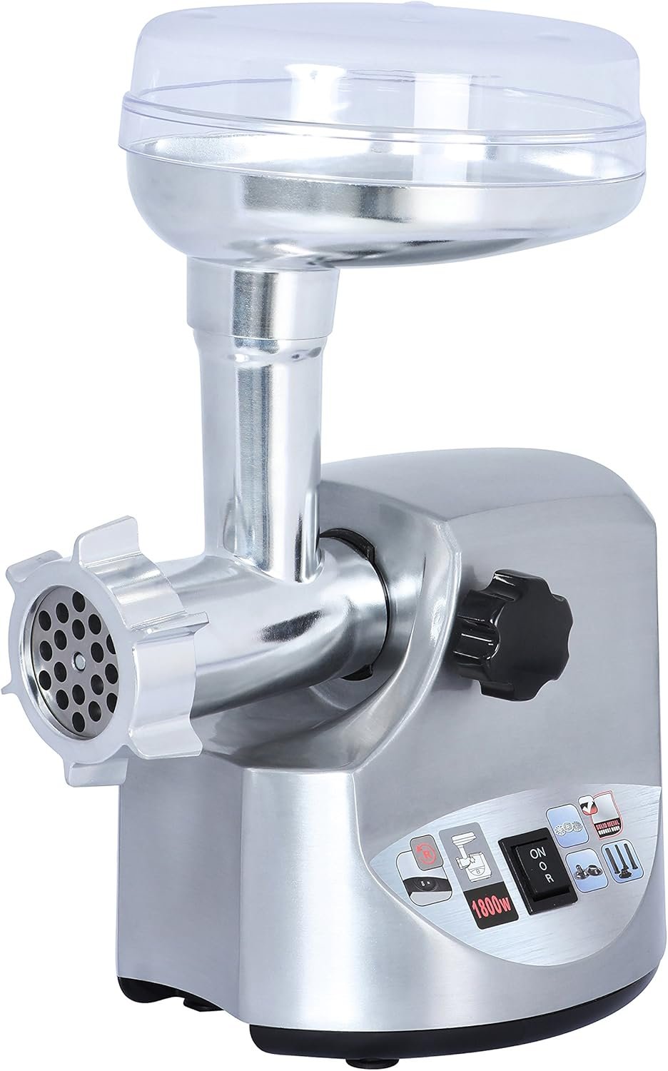 Use the Brentwood Select MG-1800S Stainless Steel Electric Meat Grinder & Sausage Stuffer to produce market quality results. Powerful 1800 peak watt motor processes all types of domestic and wild meats. Grind up to 4 pounds a minute with 700 continuous watt motor. Fine, normal and course cutting plates produce different textures for a variety of dishes. Stuff your own sausages and make traditional Kubbe with included attachments. Reverse operation removes any jams. Easy to clean removable parts. Built with stainless steel and polished, cast aluminum parts for long term durability.
