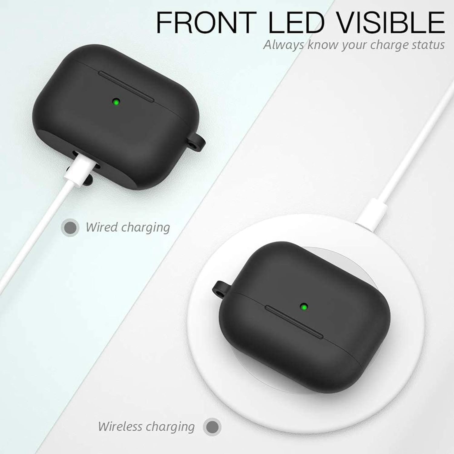 【Ultra Protection】ONLY compatible with Apple AirPods Pro Case, made of premium soft silicone, protects your AirPods against bumps, drops, and scratches. And the bottom dust plug design keeps the charging port clean and sealed when not in use.