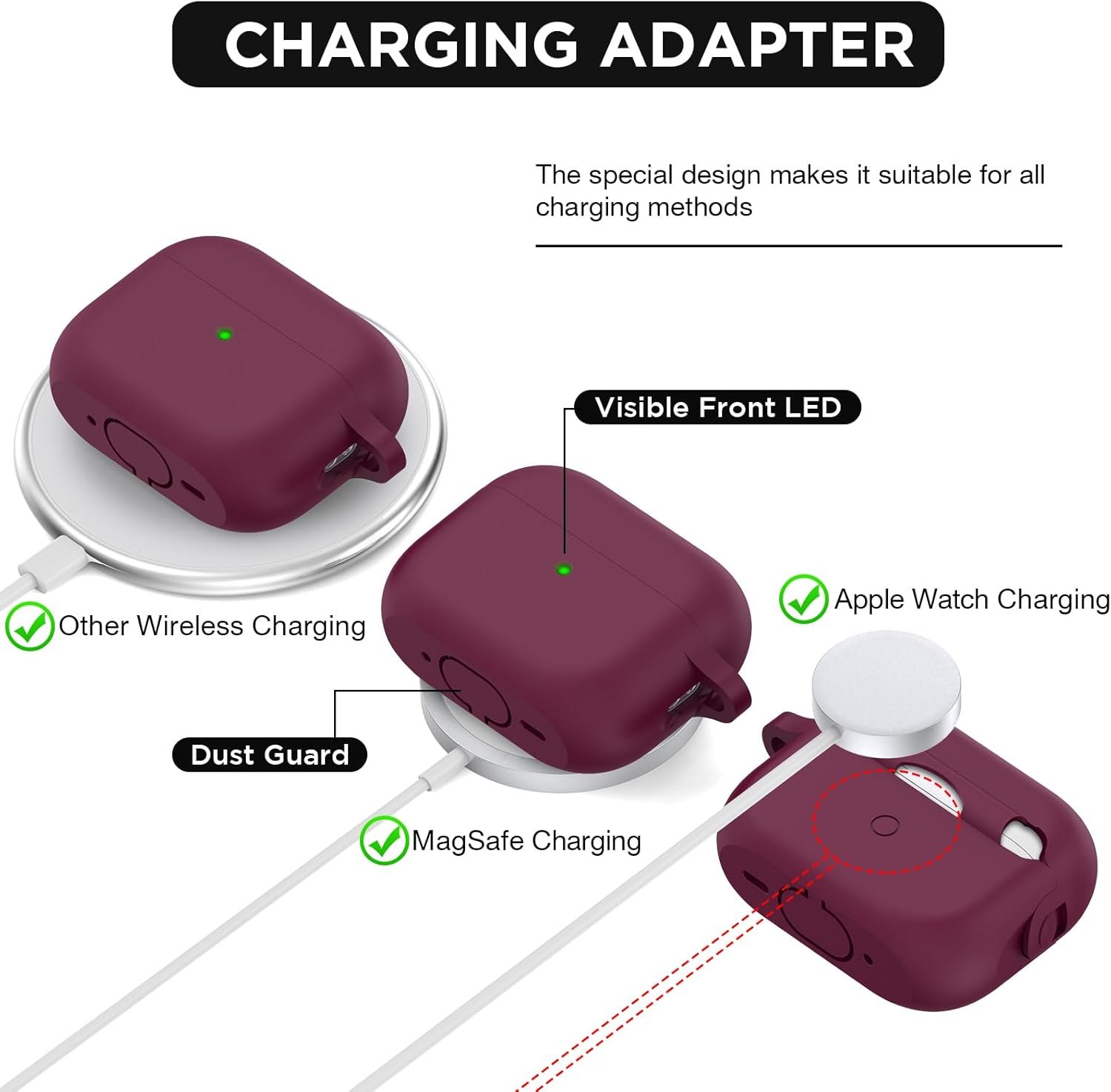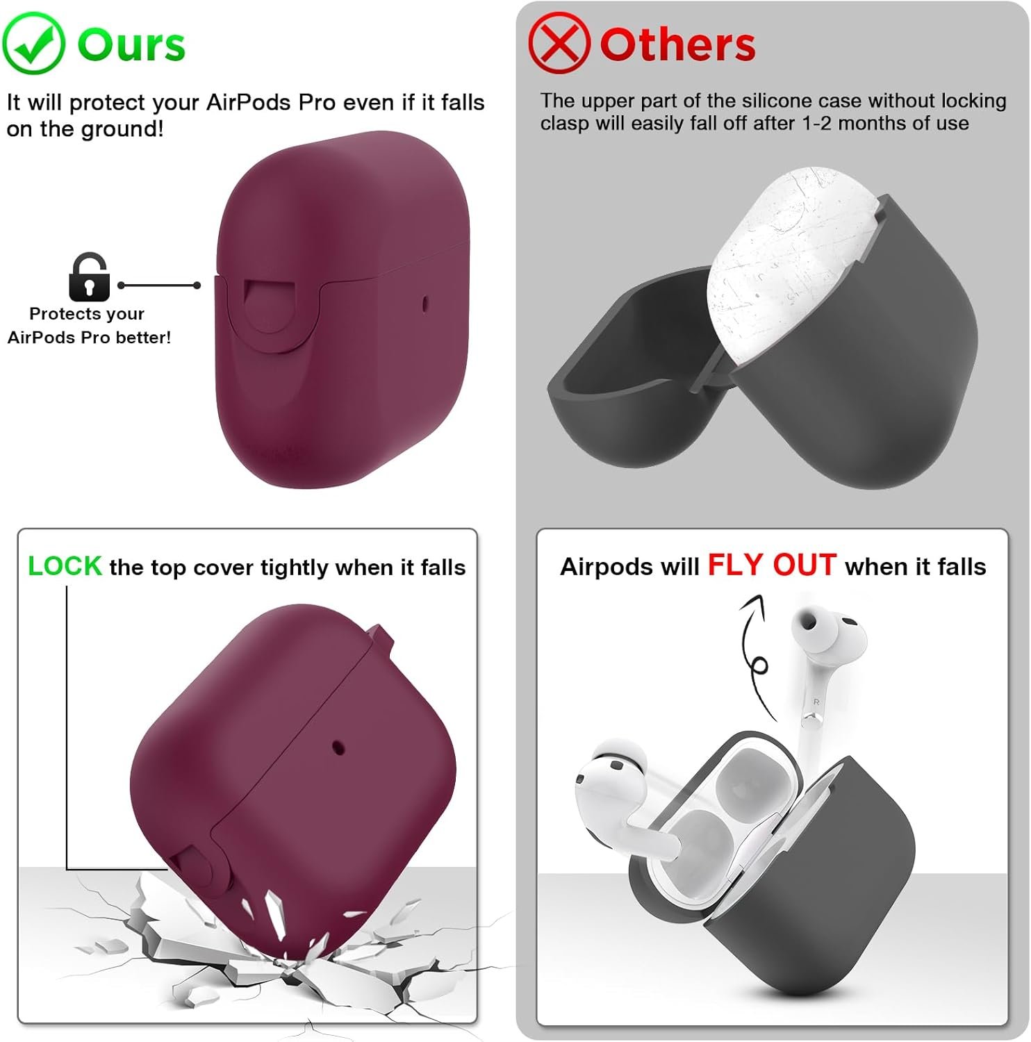 【Ultra Protection】ONLY for AirPods Pro Case 2023/2022/2019, made of premium soft silicone, protects your AirPods against bumps, drops, and scratches. And the bottom dust plug design keeps the charging port clean and sealed when not in use.