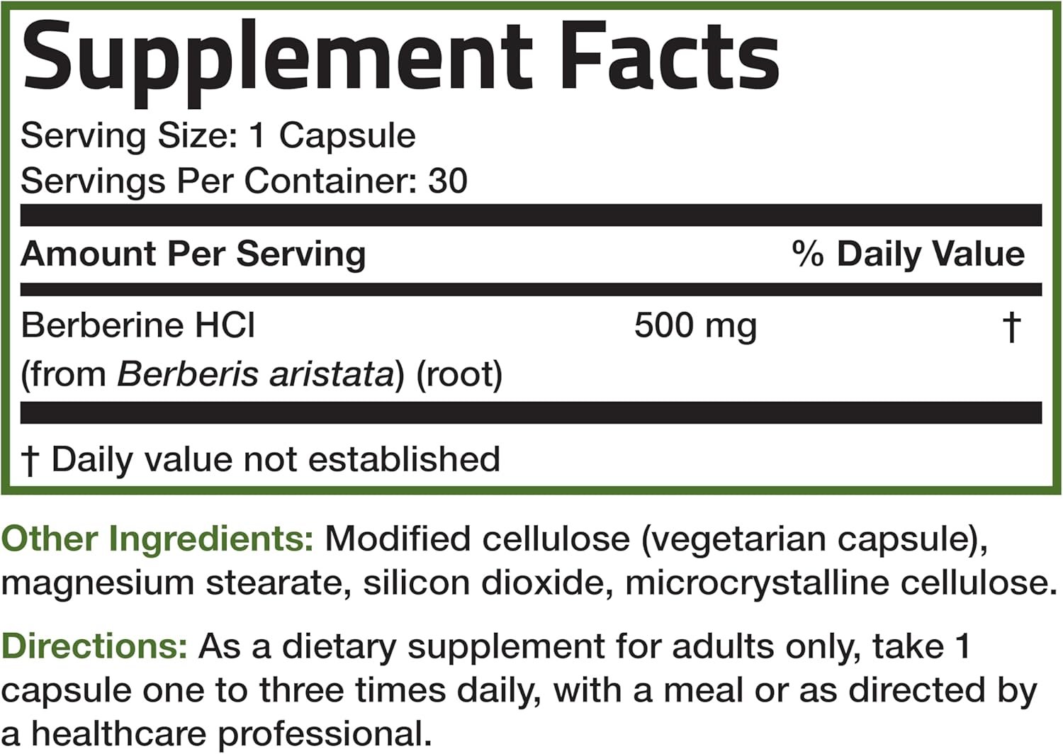 High Potency Formula: Bronson Berberine HCI provides 500 MG per vegetarian capsule for superior support. Take 1 capsule one to three times daily to support overall good health and well-being.*
