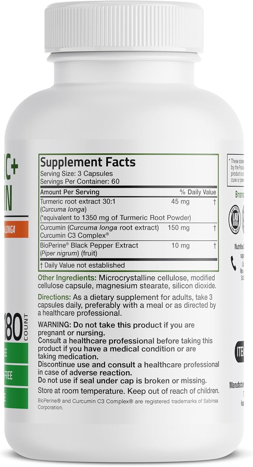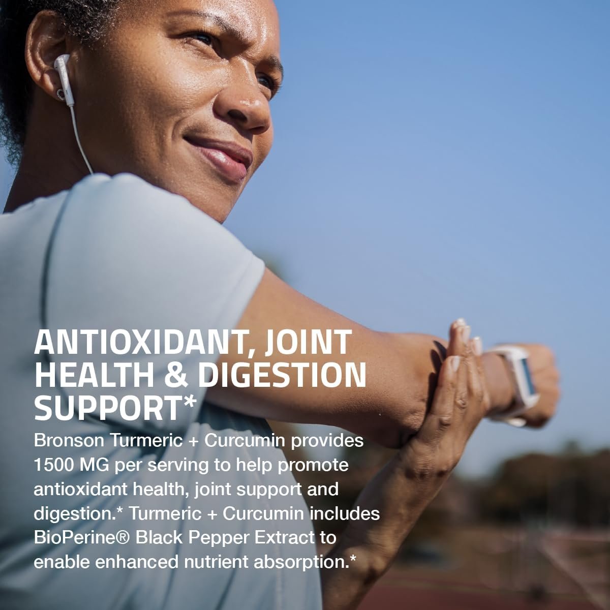 High Potency Turmeric: Turmeric is an Indian spice that has been used for centuries for its variety of wellness benefits. Bronson Turmeric + Curcumin provides 1500 MG per serving (3 Vegetarian capsules) to support antioxidant, joint and digestion health.*