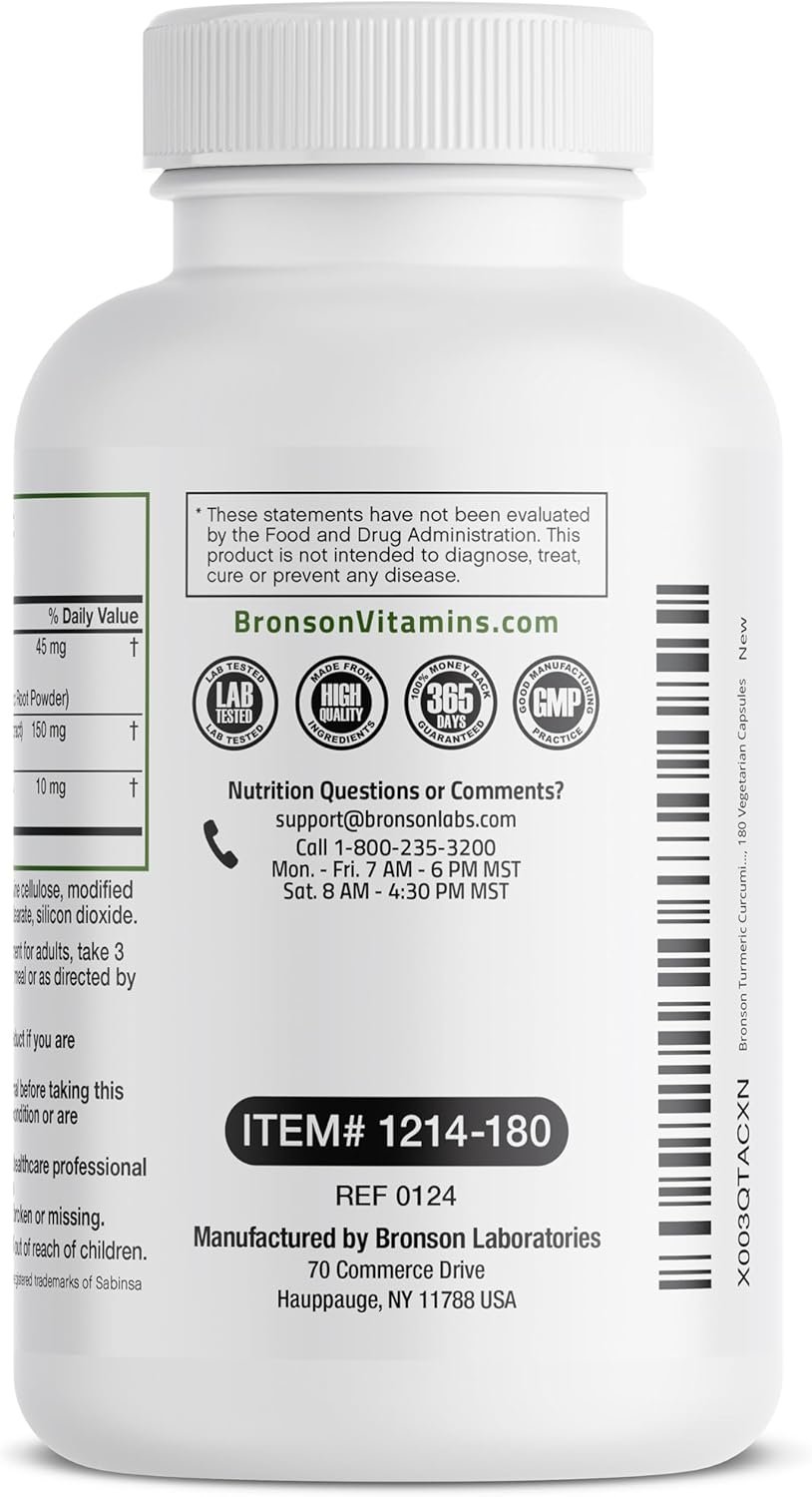 Superior Quality Vegan/Vegetarian Formula: Laboratory tested Non-GMO, Gluten-Free and Soy-Free. Bronson products are in-house tested and carefully manufactured by trained professionals in our state-of-the-art facility that is located in Hauppauge, New York. Turmeric + Curcumin 1500 MG is Vegan/Vegetarian friendly and contains no ingredients derived from animals.