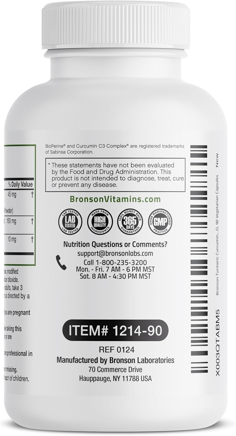 Superior Quality Vegan/Vegetarian Formula: Laboratory tested Non-GMO, Gluten-Free and Soy-Free. Bronson products are in-house tested and carefully manufactured by trained professionals in our state-of-the-art facility that is located in Hauppauge, New York. Turmeric + Curcumin 1500 MG is Vegan/Vegetarian friendly and contains no ingredients derived from animals.