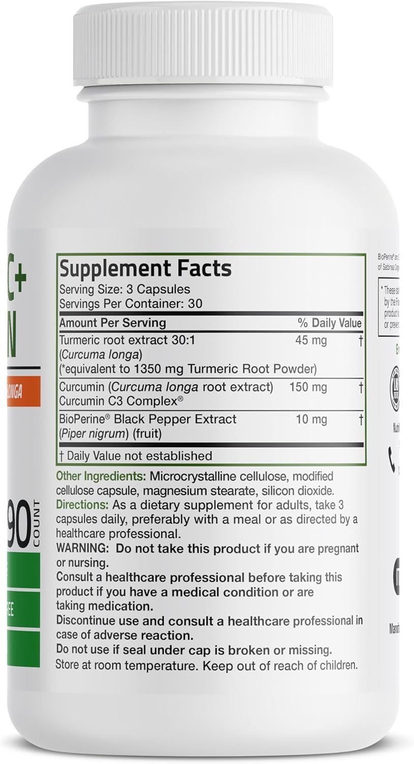 Enhanced Absorption: Bronson Turmeric + Curcumin additionally includes BioPerine Black Pepper Extract, which has been clinically shown to provide enhanced nutrient absorption.* BioPerine helps to support the absorption of Turmeric Curcumin.*