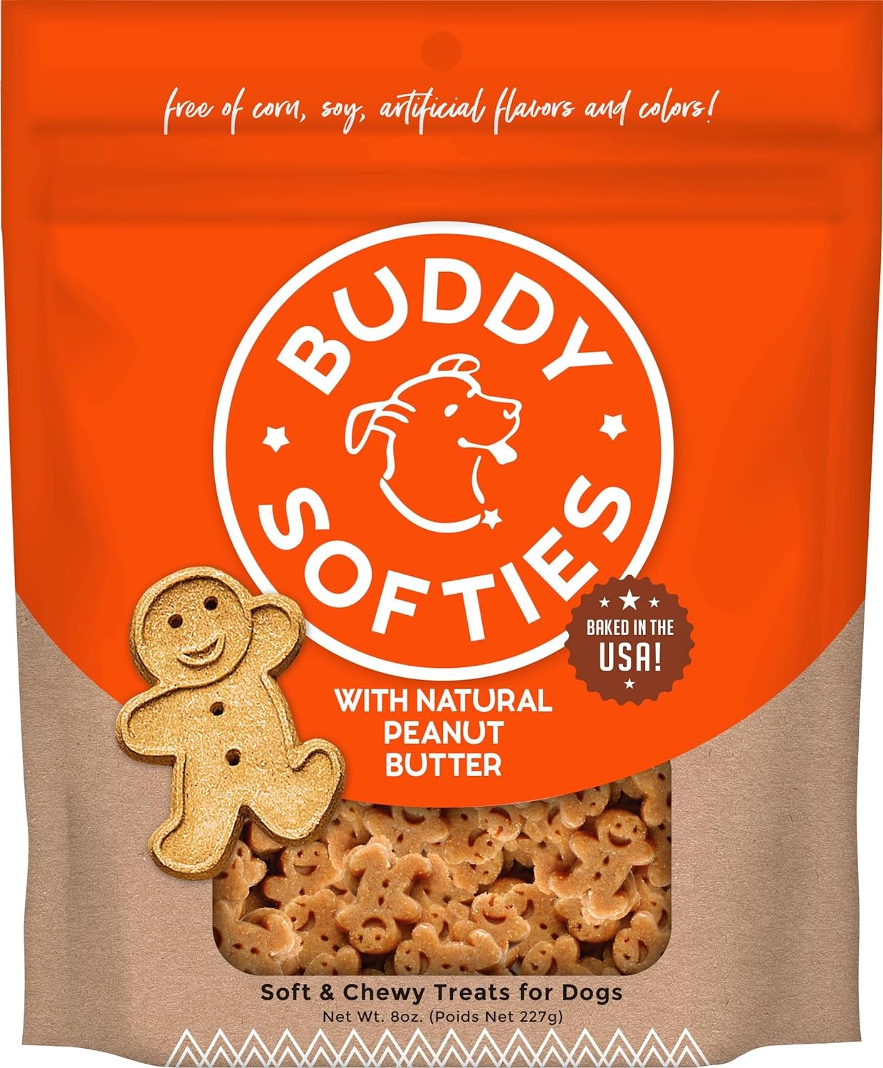 BUDDY BITE-SIZED SOFTIES: Contains ONE 8 oz. bag of whole grain Buddy Softies that are enjoyed by all dog sizes – but favored by small to medium breeds. Baked to perfection, our bite-sized soft & chewy treats are satisfying for dogs in any life stage