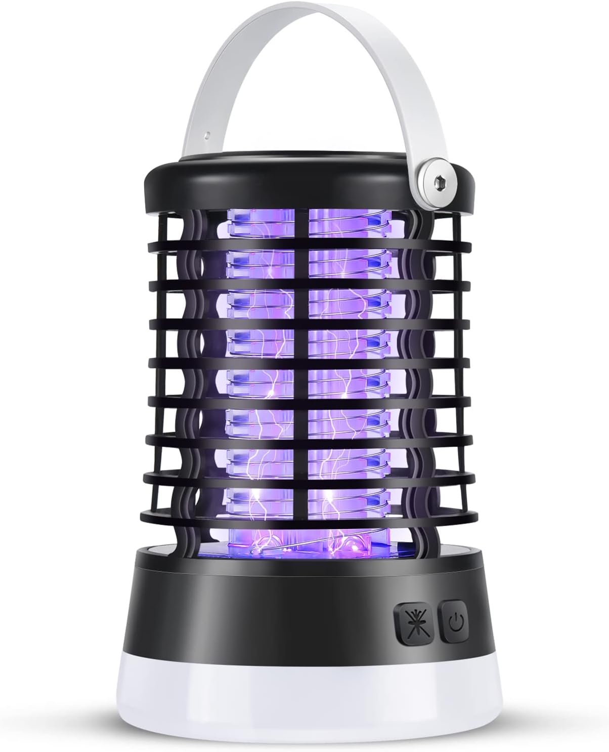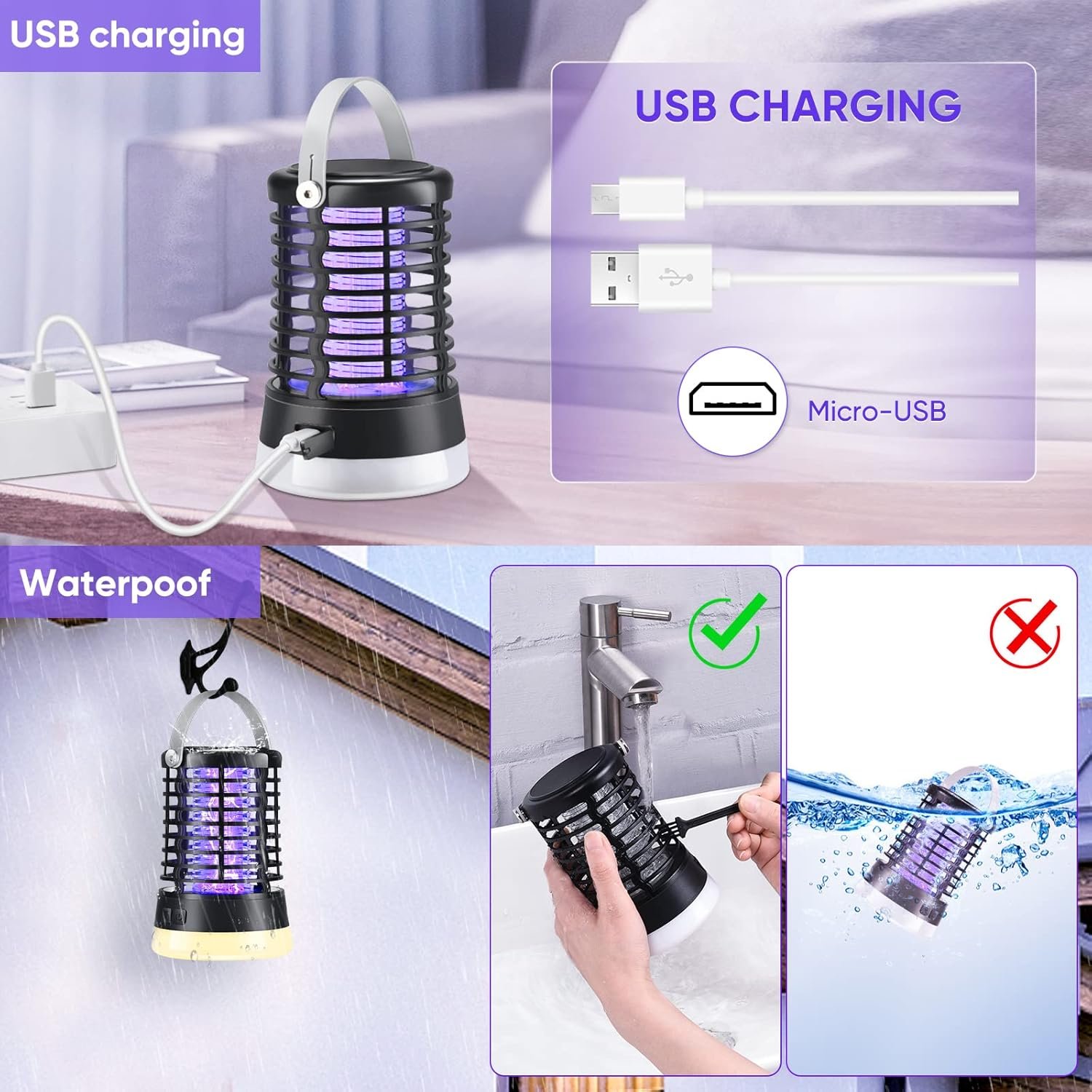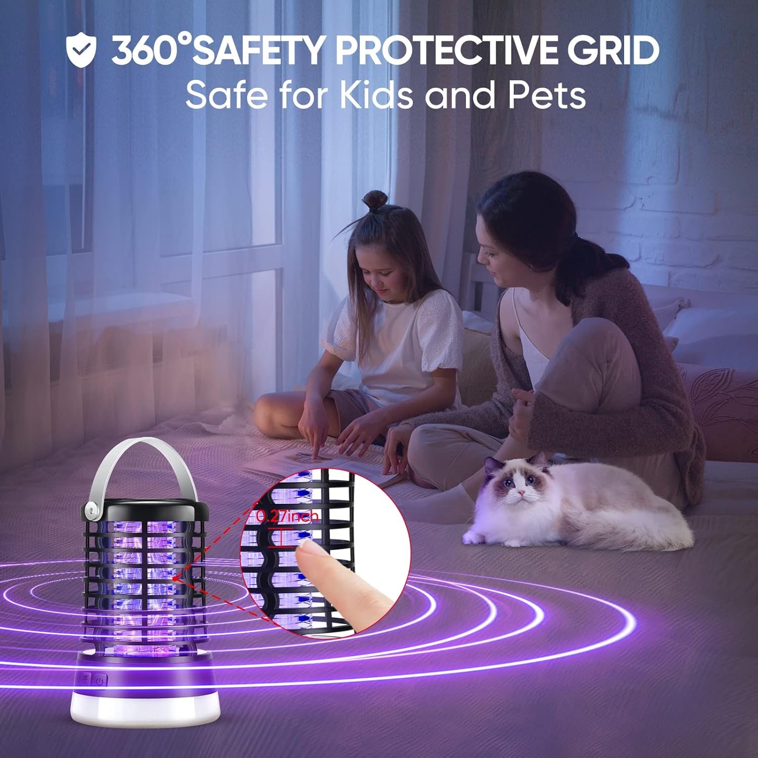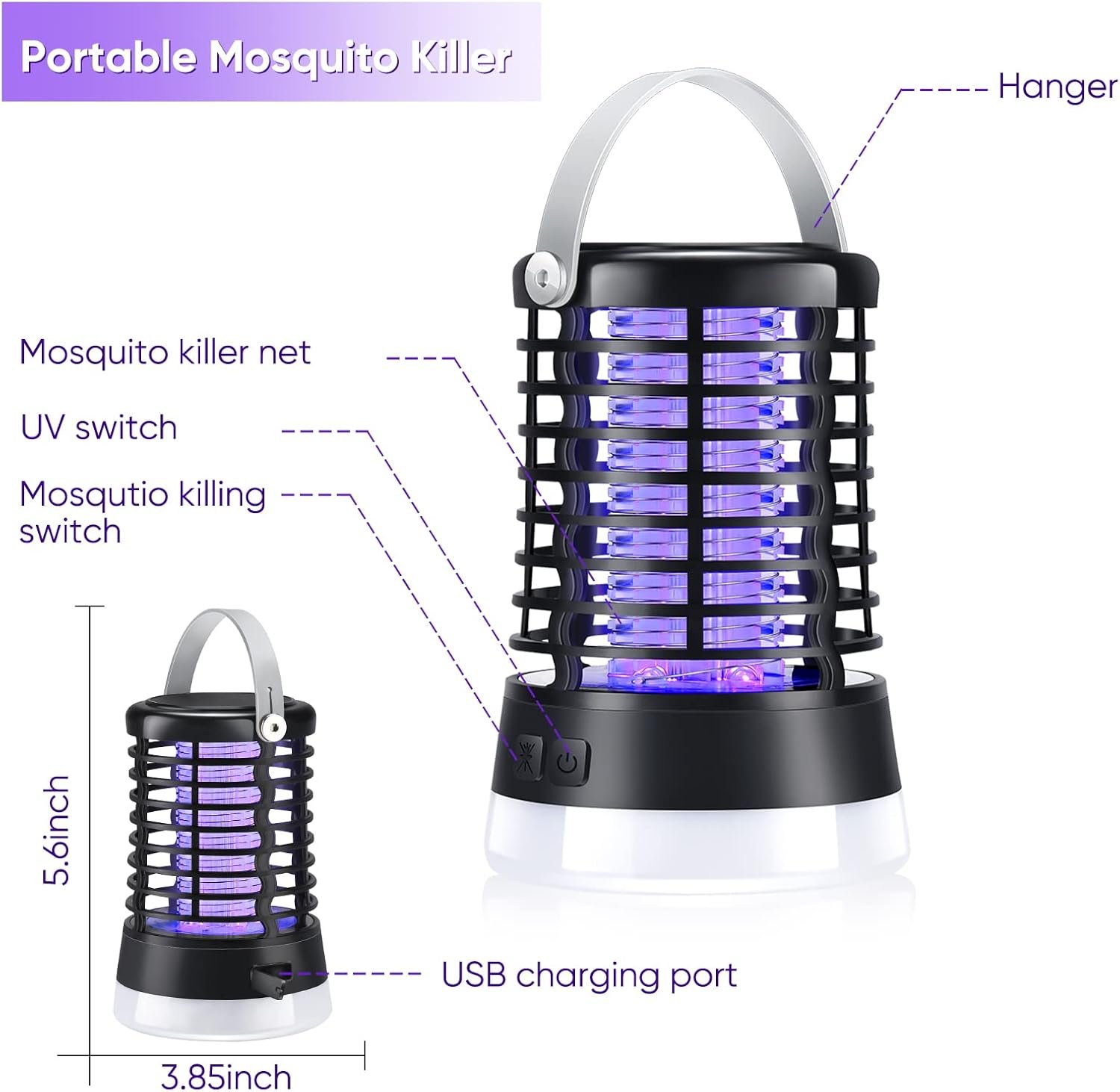 【USB Rechargeable & Portable】This portable camping mosquito trap built-in 2200mAh rechargeable battery with usb interface.You can use a power bank or emergency power supply to power it.Small and light bug zapper is very portable,and it is a good companion for camping .The handle hook is designed for easy hanging,making it convenient and comfortable when you are camping.