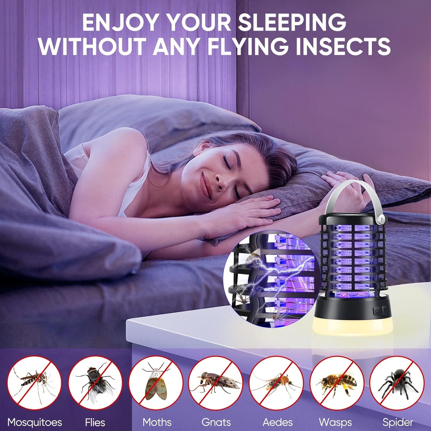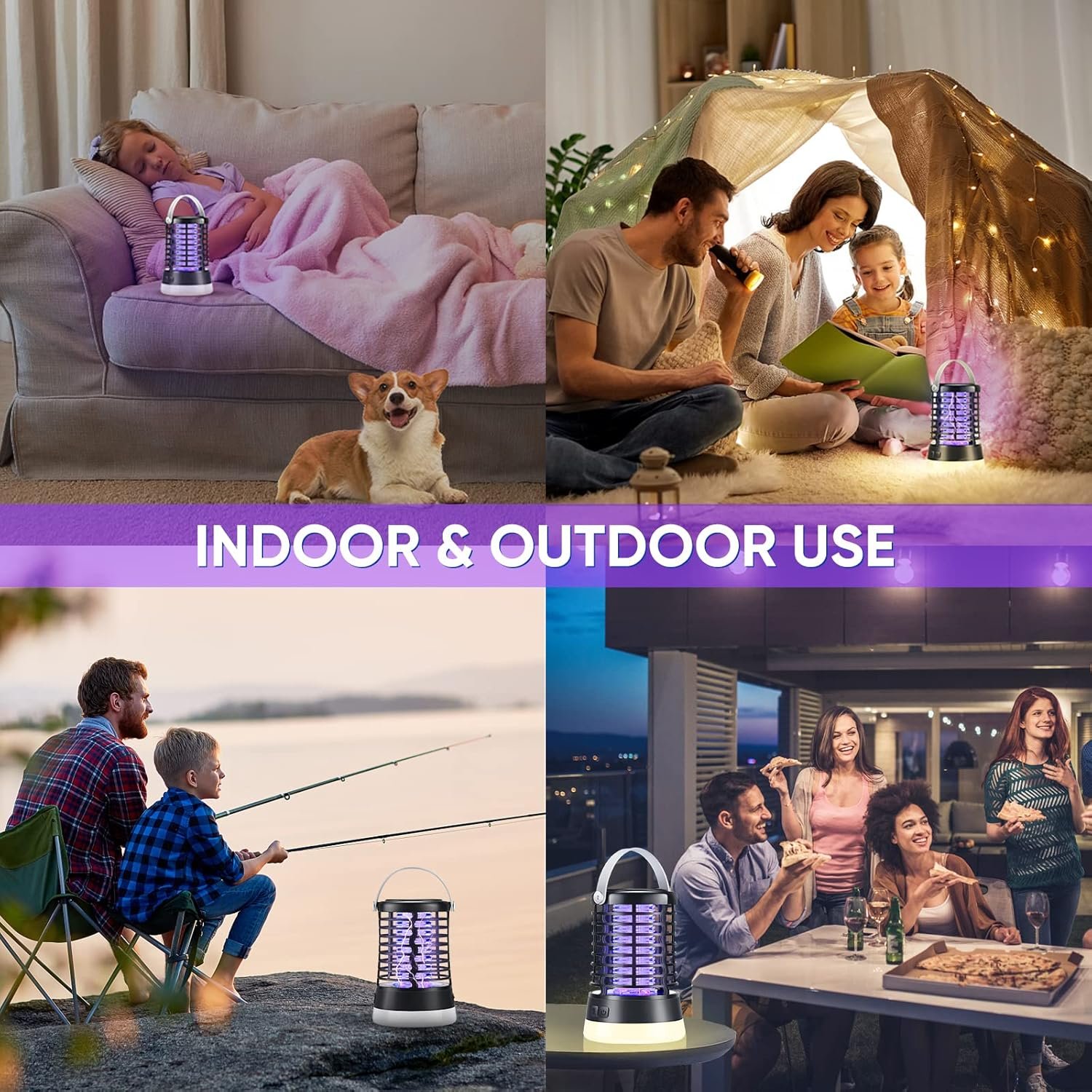 【4 in 1 Fly Killer Lamp】 In addition to the purple insect killing light,the multi-functional bug zapper also has 3 lighting modes,white light,warm light and red warning light.According to your needs,white light and warm light can be used as night lighting,and the alarm light is used for outdoor emergency situations. Multifunctional Mosquito lamp is suitable for indoor use and outdoor activities such as fishing,camping and hiking.