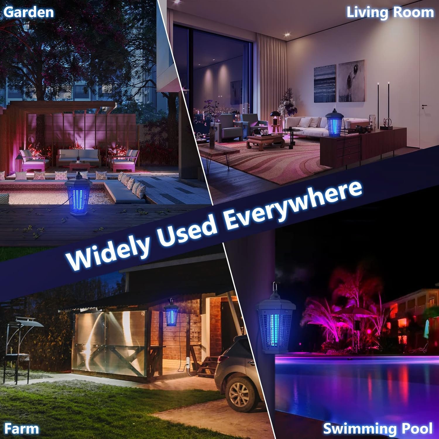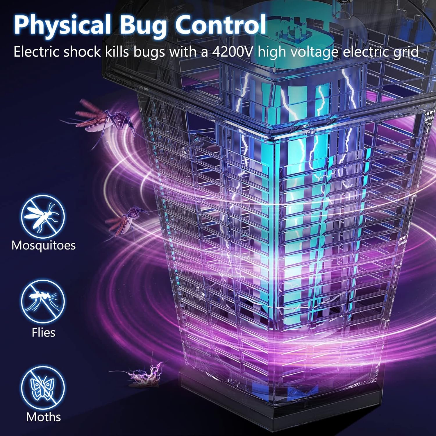 Electric Bug Zapper: 4200V high voltage power grid instantly kills the bugs on contact. The mosquito zapper can be used to kill mosquitoes, flies, and moths.