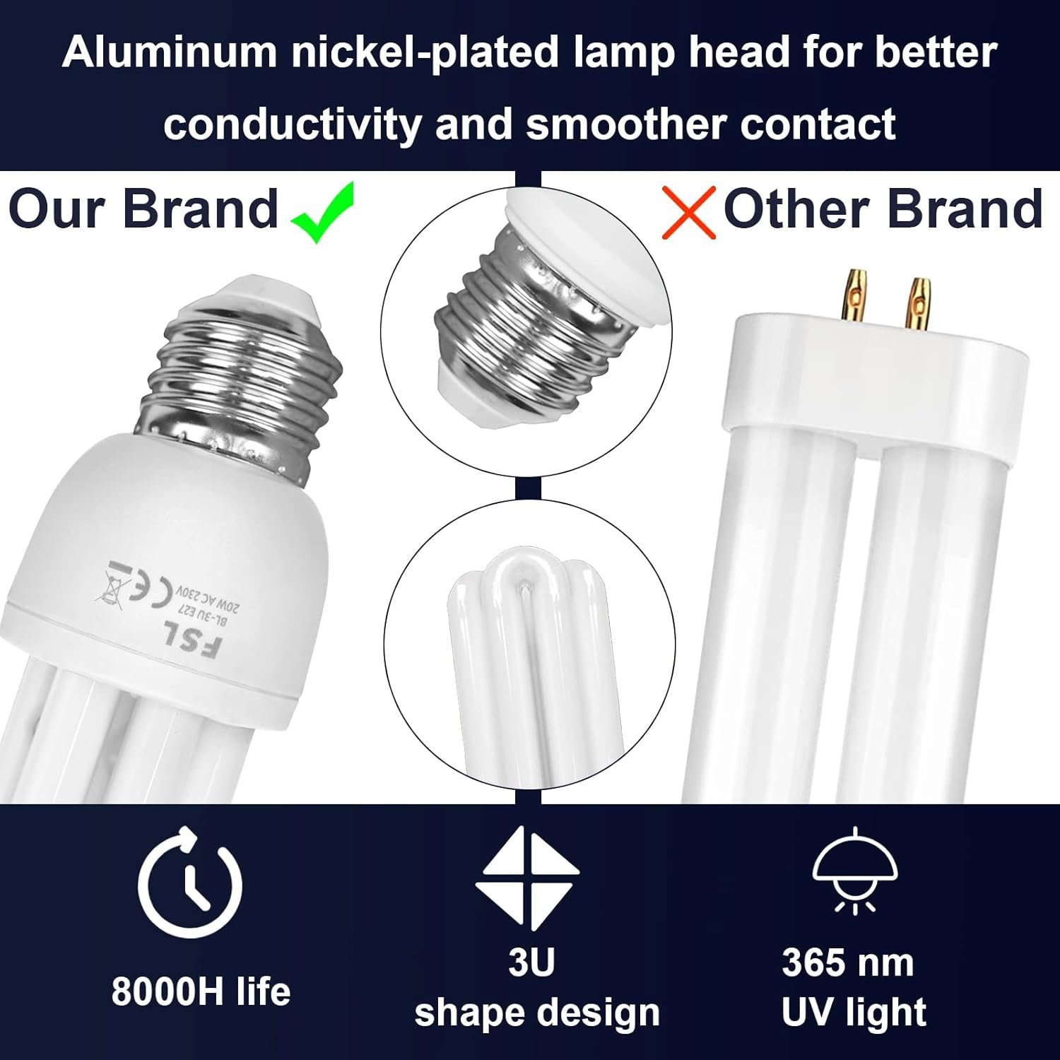 Long-Lasting & High-Quality Bug Zapper Bulbs: According to the experimental test, the average service life of a 20w bug zapper bulb is about 8000H. It adopts a 3U shape design, which makes the beam angle wider and Better for attracting mosquitoes