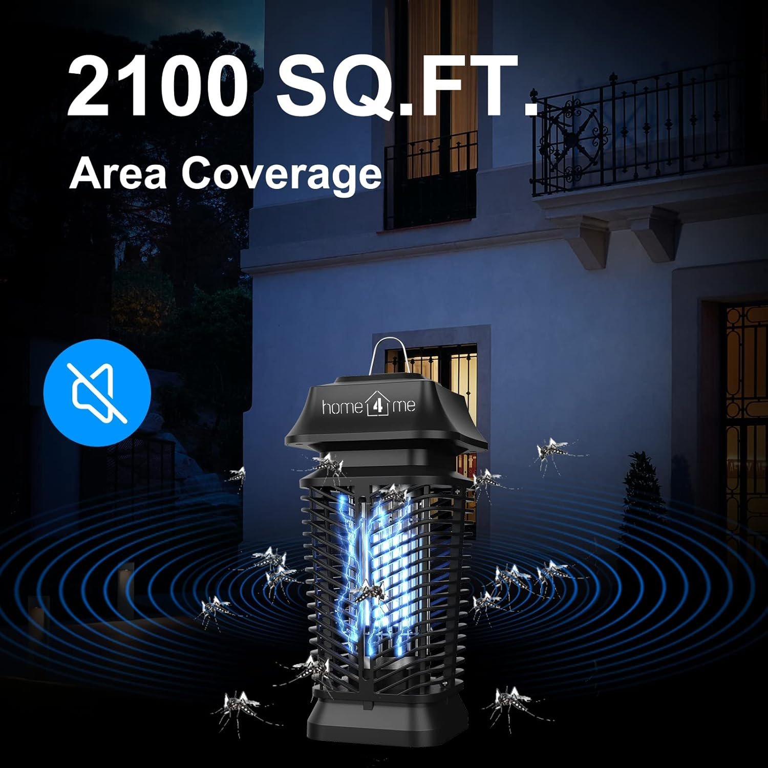 Quiet and Wide Coverage: This bug lamp with over 2100 sq ft of coverage, you can hang the mosquito lights indoors or outdoors, such as in your backyard, garage, patio, or tree. Our bug zapper will be quiet when working, you will not be disturbed