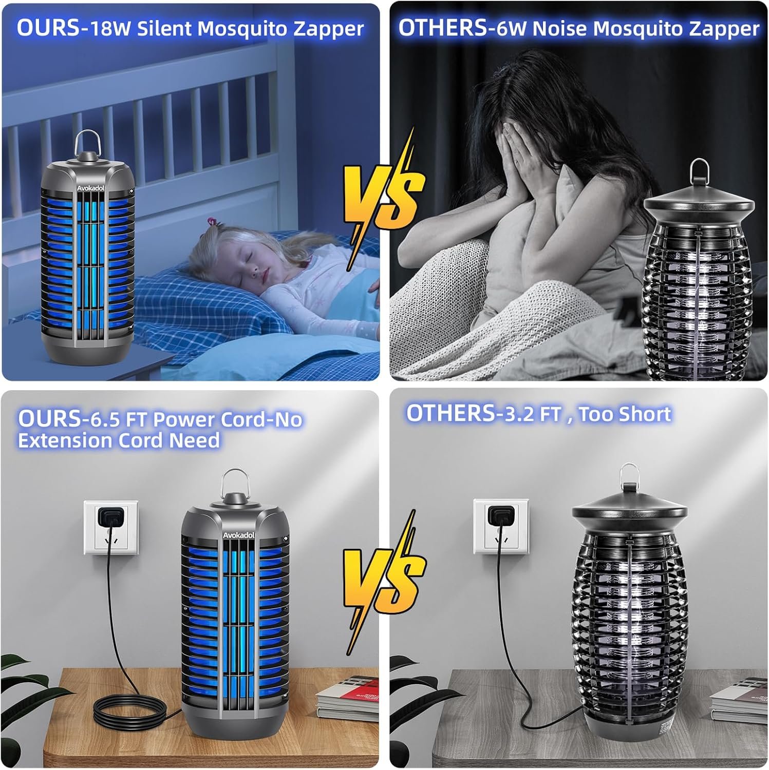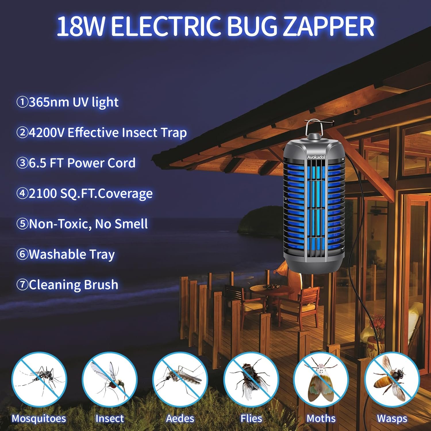 Bug Zapper Outdoor Indoor, 18W Bulb Mosquito Zapper with 6.5 FT Power Cord, 4200V High Powered Fly Trap Indoor for Home, Mosquito Trap Cover 2100 SQ.FT. -Ideal for Backyard, Garden, Patio.