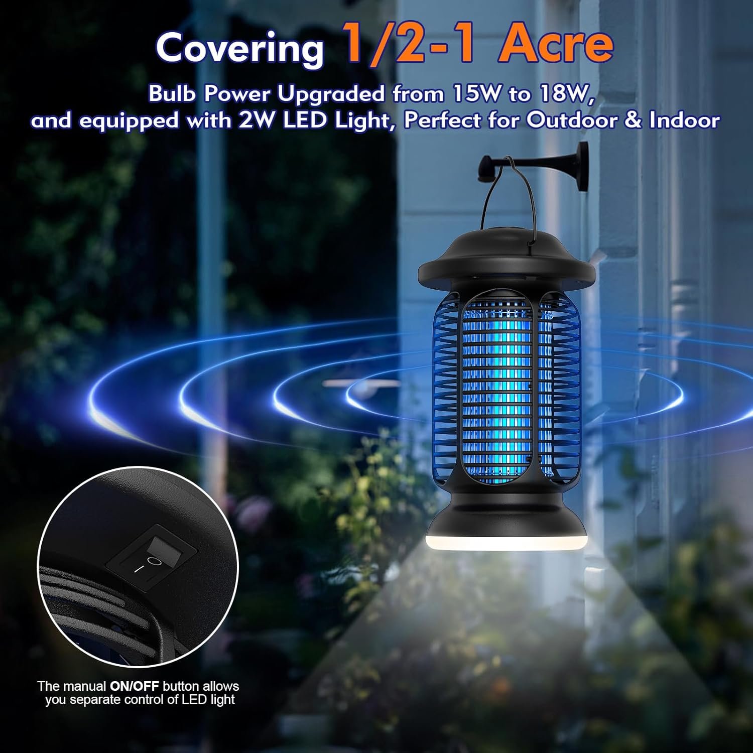 【Coverage of 1/2-1 acre, efficient trapping】AMUFER biological team developed more powerful 18W blue-violet bulb with 2W LED bulb, covering area can range up tp 1/2-1 acre. Mosquito zapper with unique 330nm-420nm uva wavelength design, efficiently attracting mosquitoes, flies, moths, and other 3,612 species of insects.