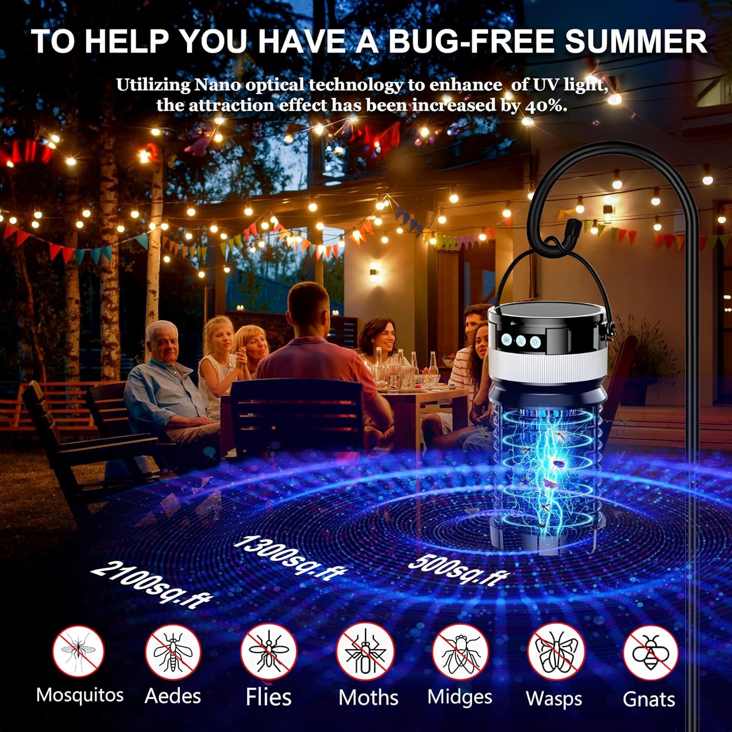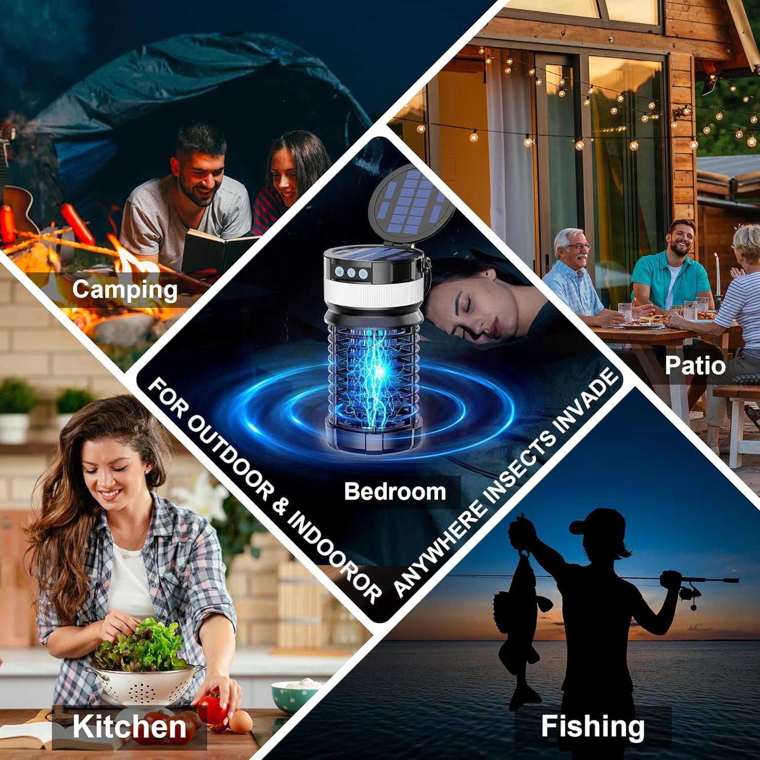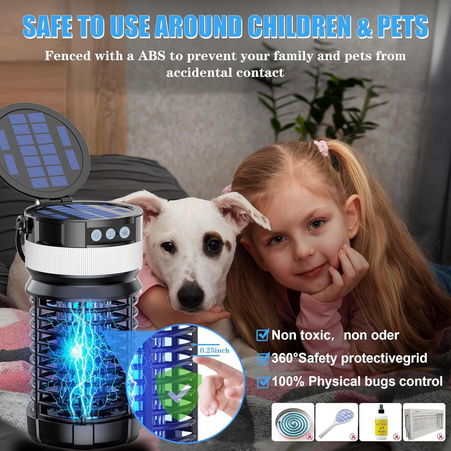DUAL FOLDING SOLAR PANELS & 4000mAh BIG BATTERY:Solar bug zapper outdoor supports solar charging (two solar panels) & USB-C Charging, There is no need to rely on power outlet.Built-in 4000mAh high-capacity battery.After fully charged, the mosquito trap can last working for 10-16 hours in total,meet your needs for the whole day. Looking for the best bug zappers in the market? Look no further!