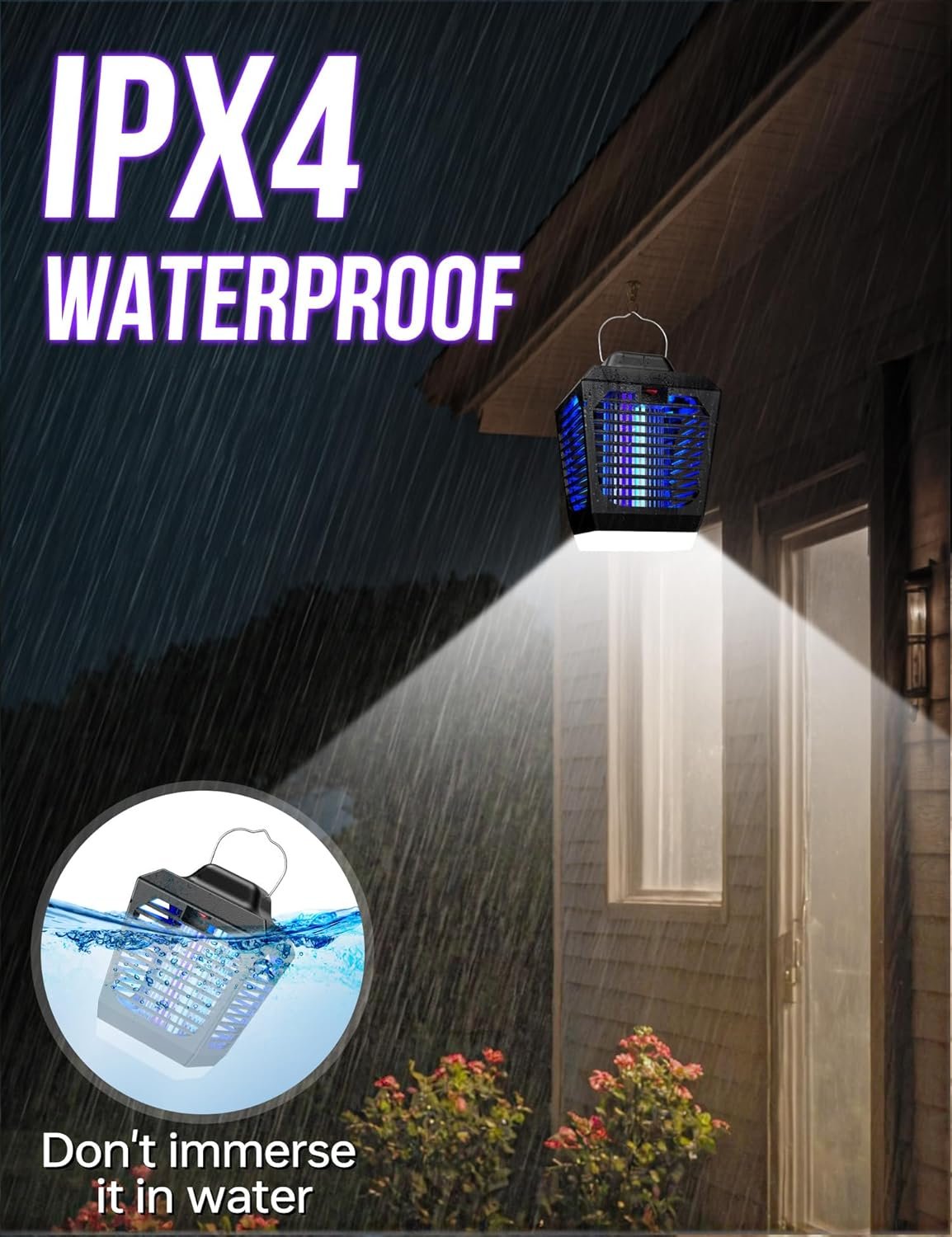 【Waterproof】Designed waterproof,Endbug electric bug zapper is resistant to harsh weather conditions, ensuring longevity.With a hanging hook,it can be used in various locations,including home,balcony, patio,garden,porch,courtyard,farm,office,swimming pool,garage,pergola and more.