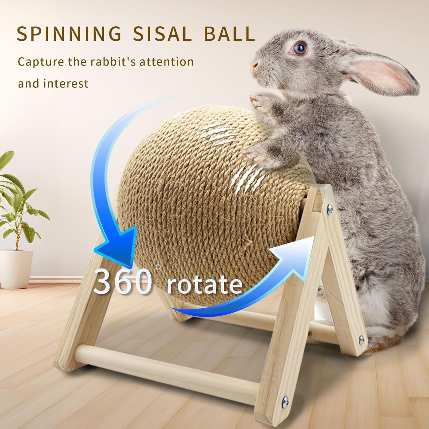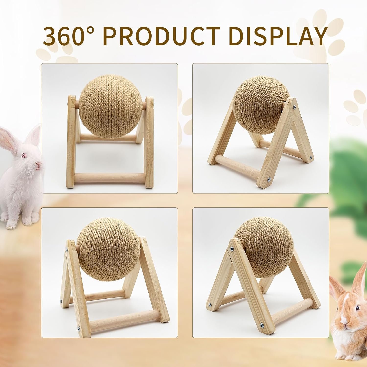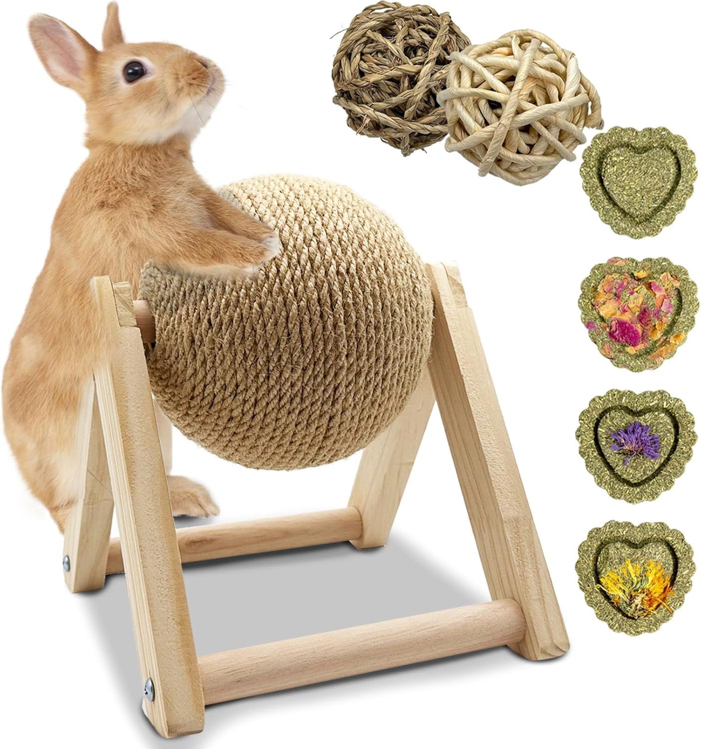 Safe Material: Rabbit scratch toy made natural sisal, the ball surface is tightly wrapped with sisal rope, wear-resistant not easy to break. Solid wood brackets and bases provide stability not easy to tip over, provide safe claw grinding gifts to your pet