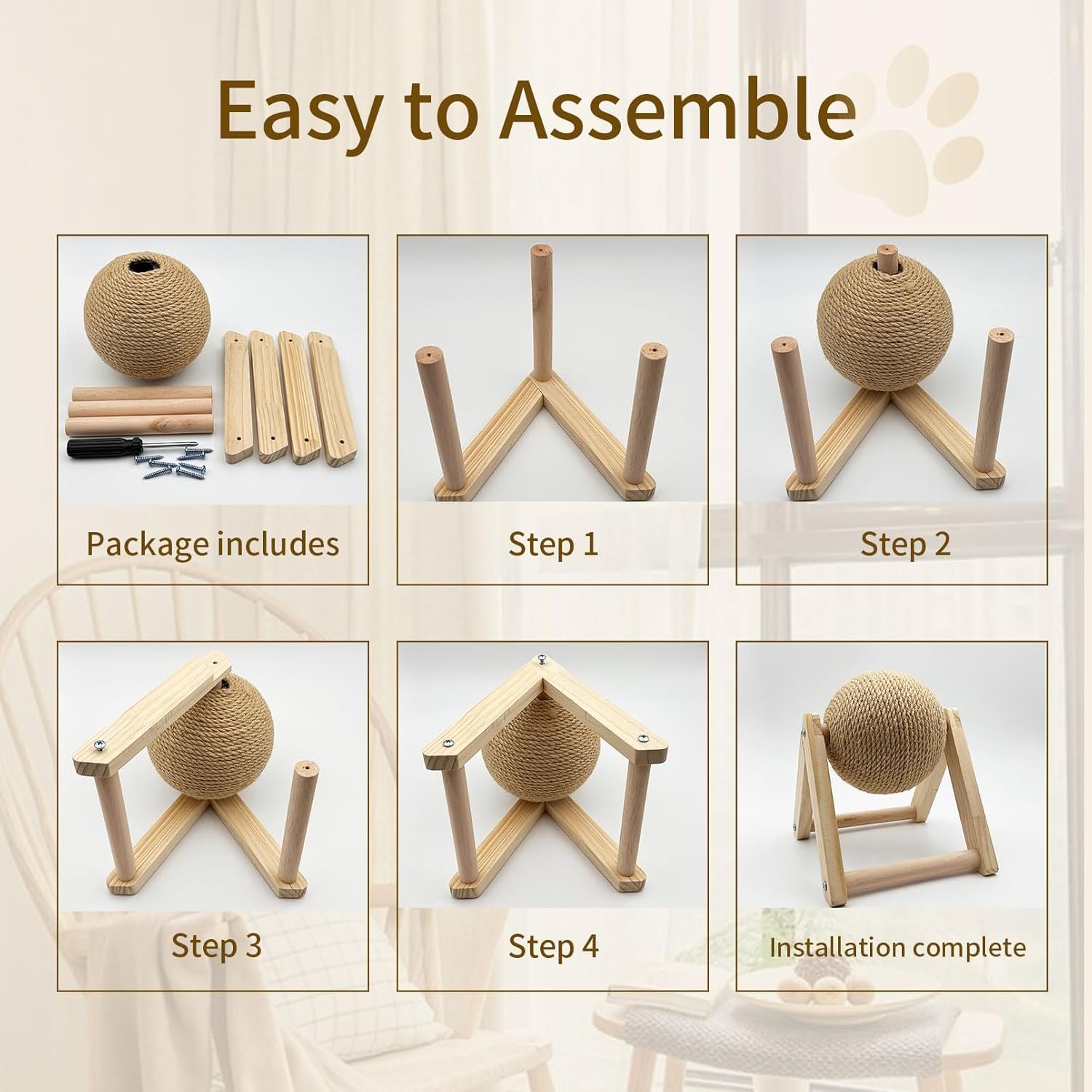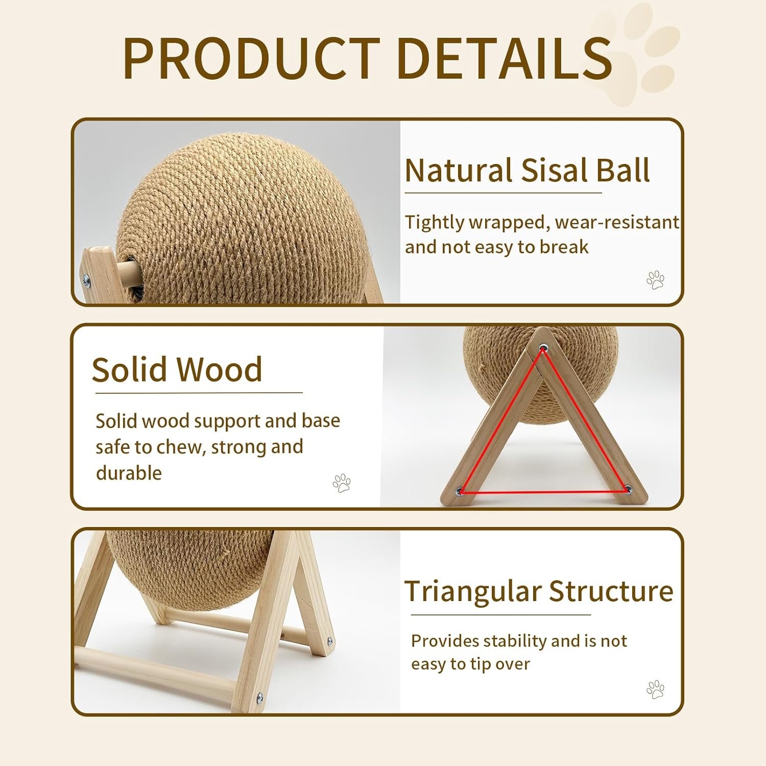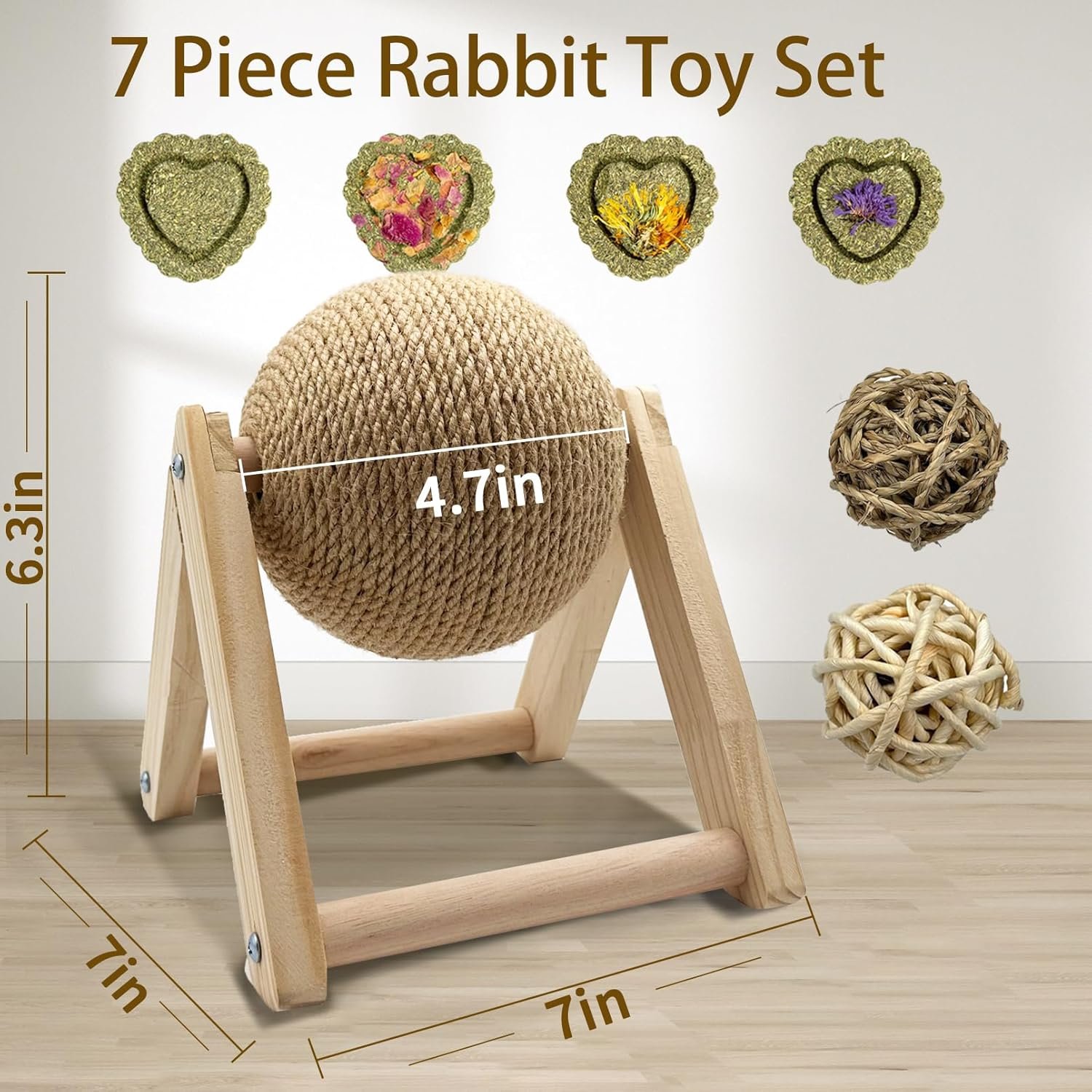 Safe Material: Rabbit scratch toy made natural sisal, the ball surface is tightly wrapped with sisal rope, wear-resistant not easy to break. Solid wood brackets and bases provide stability not easy to tip over, provide safe claw grinding gifts to your pet