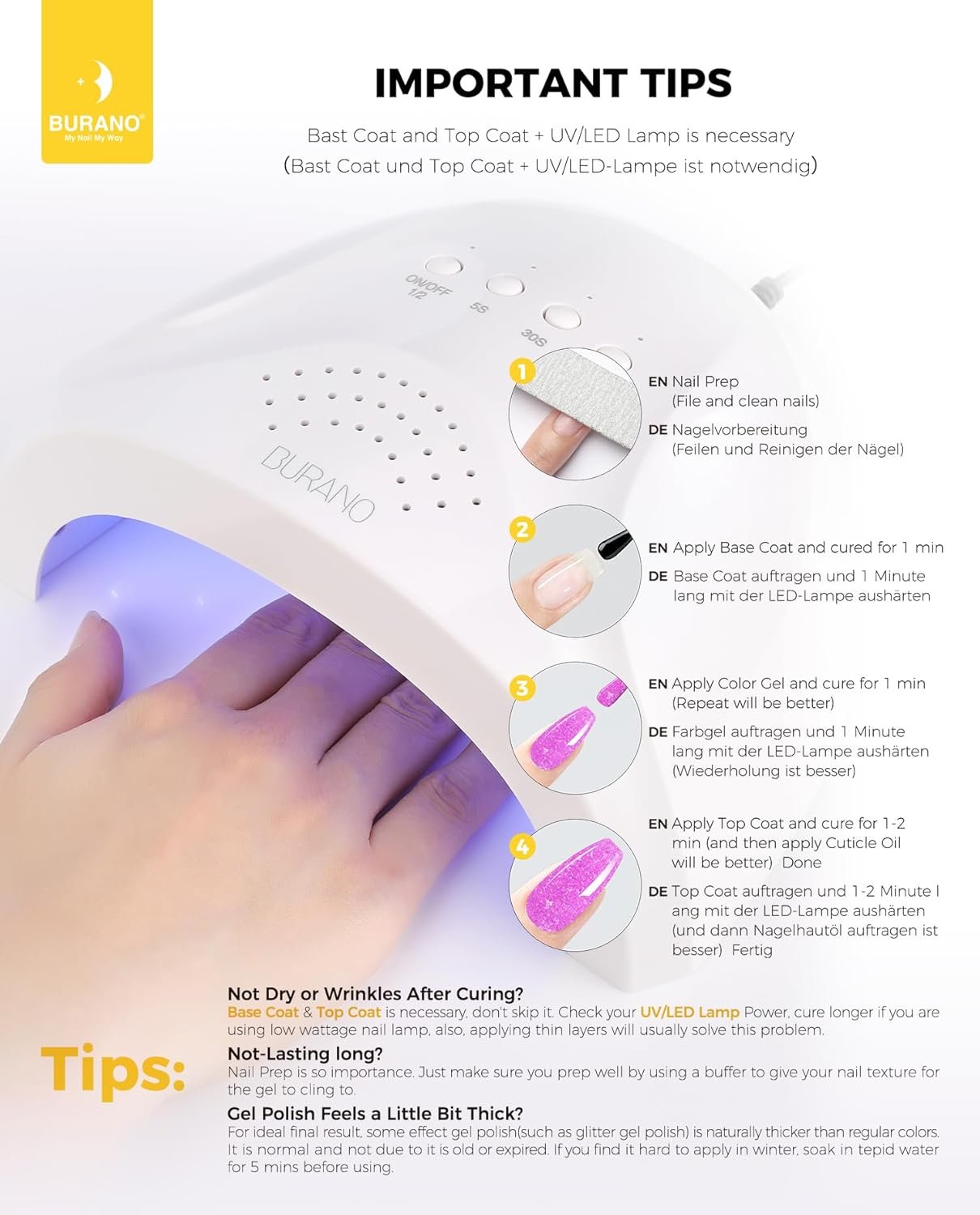 No Chip And Long Lasting For 28 Days: BURANO reflective diamond gel nail polish can last 28 days and keep your nails as the first day, no lift, no damage, no peel off