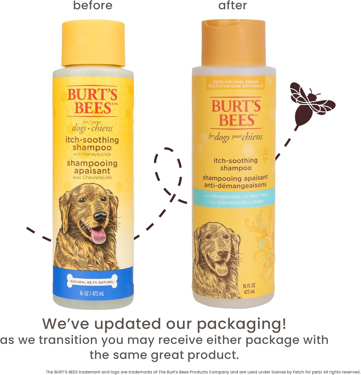 Burt’s Bees has been a pioneer in developing nature-friendly health and beauty care products for over thirty years. We believe that pets are family, so we’re bringing the same natural attention and care to your closest furry friends. Burt’s Bees Natural Pet Care now brings nature’s solutions to our beloved pets with a specially formulated line of natural grooming products including shampoos, conditioner, sprays, wipes, and treatments. Burt’s Bees Natural Pet Care products are made using 80% post-consumer recycled bottles. Tap into nature’s power with Burt’s Bees Itch Soothing Shampoo for Dogs. This effective dog shampoo for dogs with itchy skin calms your companion’s coat with nature’s finest ingredients. This naturally nourishing formula taps into honeysuckle’s natural ability to ease irritation, soothe dry skin, and encourage wagging. Burt’s Bees shampoos for dogs help you groom your pet with gentle, natural ingredients that keep your doggy naturally fresh. It’s made with some of nature’s finest ingredients for your peace of mind and your canine’s well-being. Free of colorants, this anti-itch shampoo is pH balanced for dogs. As is typical with natural formulas, this itch relief shampoo doesn’t have a strong scent outside of the main ingredients or a strong lather because we don’t add in artificial fragrances or chemicals to any of our products. Burt’s Bees Natural Pet Care is made in the United States without parabens, phthalates, petrolatum, SLS, or synthetic fragrances. Discover nature’s best for your pets! Directions: Apply shampoo liberally to your dog’s wet coat. Work from head to tail, while carefully avoiding eyes. Rinse thoroughly and towel dry. YOUR SATISFACTION IS OUR PRIORITY: If you have any questions or feedback on this product, please reach out to us at Fetch for Pets.