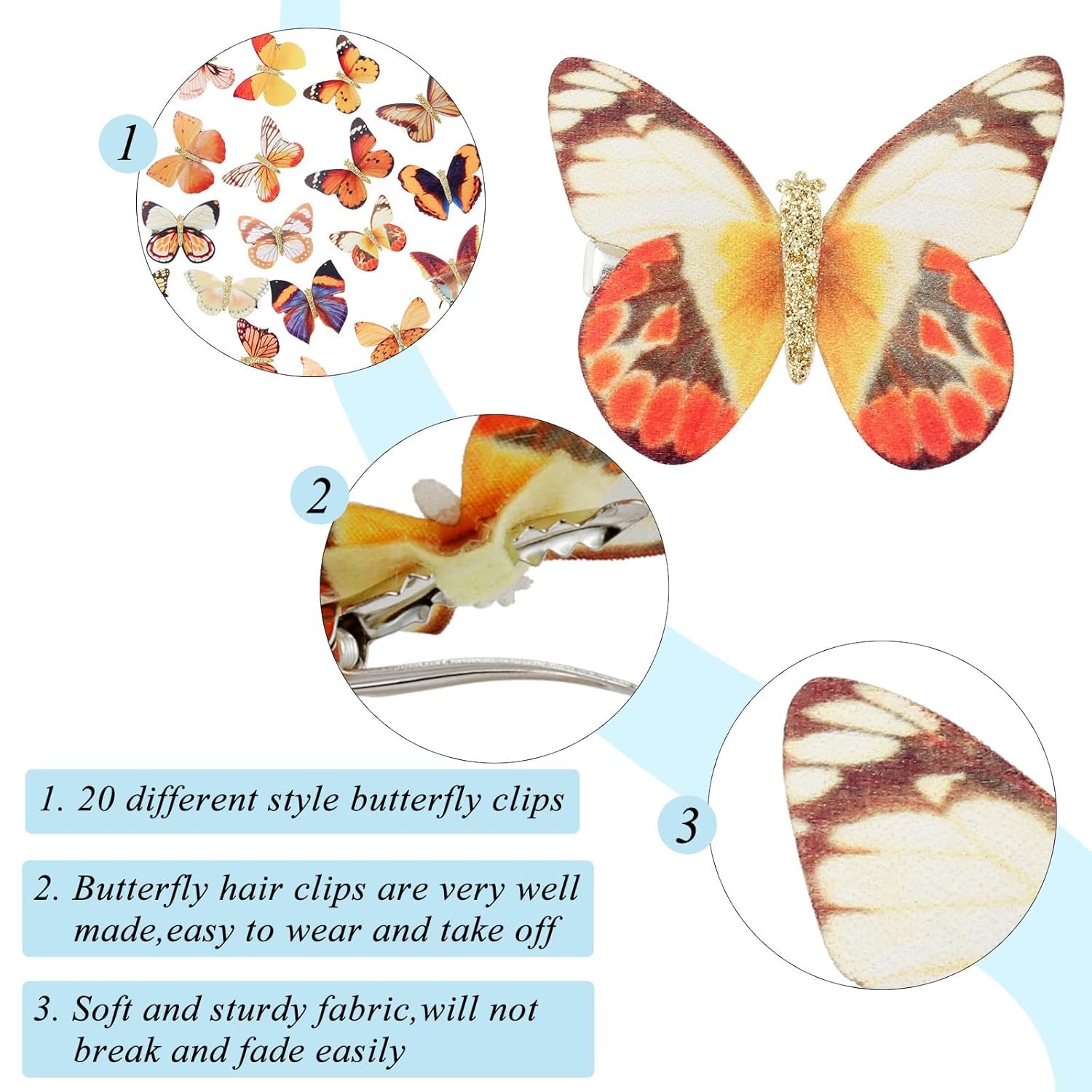 【Package】Package includes 20 x butterfly hair clips. If any reason you are unhappy about product, please contact us. We take full ownership and responsibility for the quality of our products and will do our very best to solve your problem quickly and efficiently!